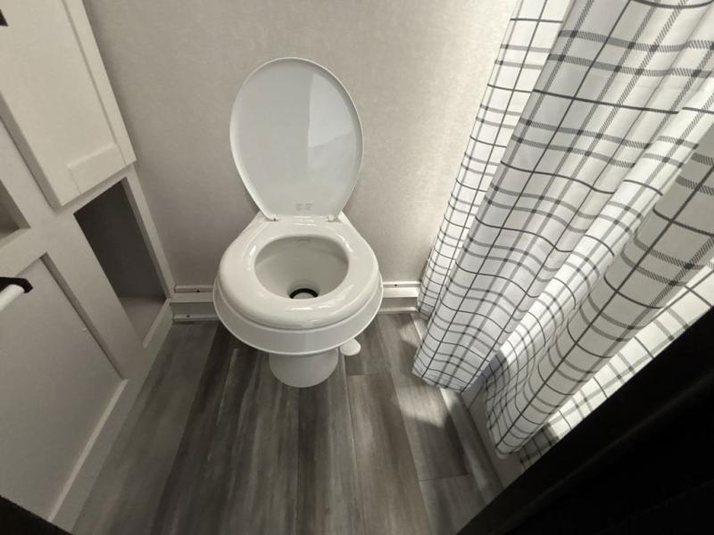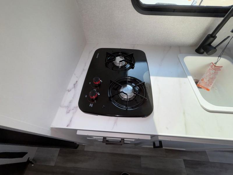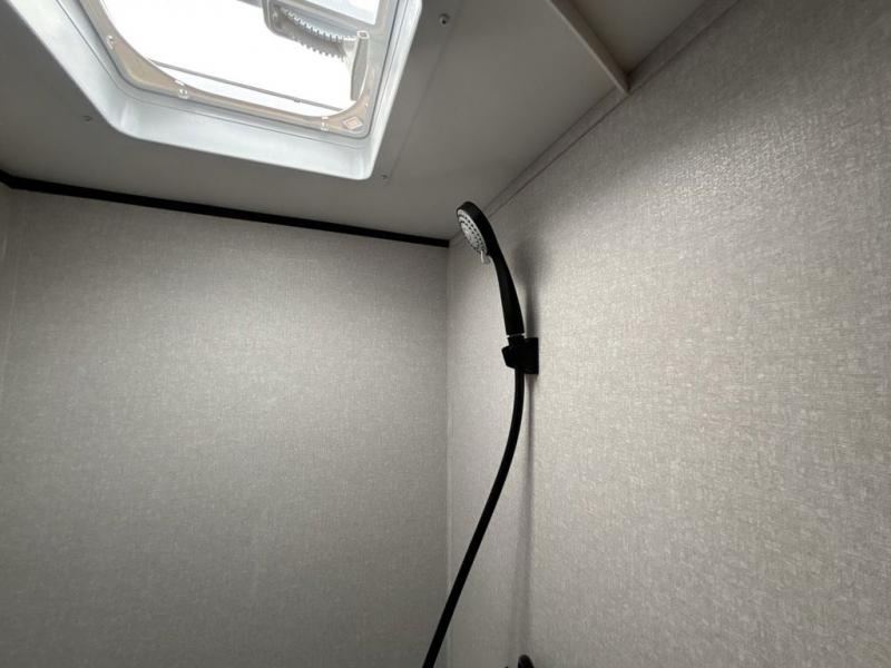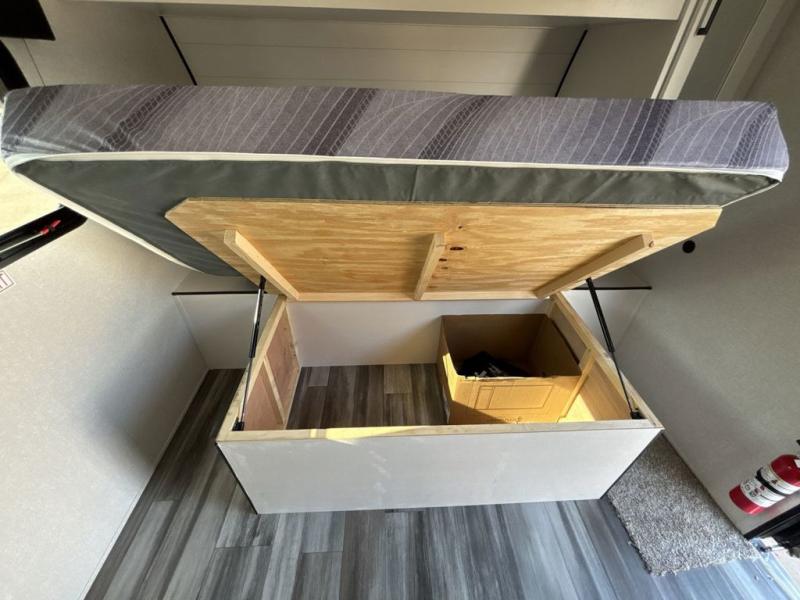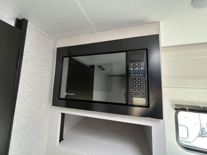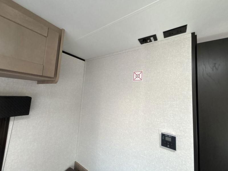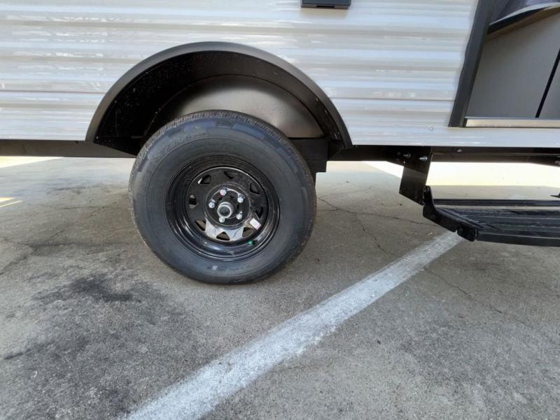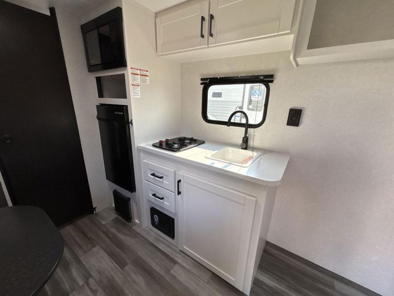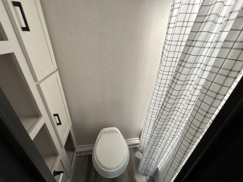 This travel trailer includes everything you need for fun trips at the lake. When you arrive at the campground, you can unload the exterior storage, then put out the 10' power awning. The booth dinette inside will provide a place to dine together, and the full rear bath with a shower will make it easier than ever to clean up after a day of hiking. A front RV queen bed will provide a great night's rest, and the overhead shelf will be perfect for books or personal belongings.