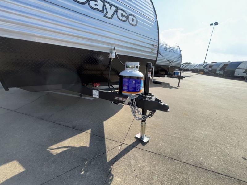 The Jayco Jay Flight SLX travel trailer is quite easy to own because it is lightweight for an easier towing experience. Built on a fully integrated A-frame with galvanized-steel, impact-resistant wheel wells, the Jay Flight SLX has quality at its very foundation. That quality continues on to the electric self-adjusting brakes, easy-lube hubs, Magnum Truss roof system, and LP quick connect. Some of what the mandatory Customer Value Package includes is backup camera prep, Keyed-Alike entry and baggage doors, and an on-demand tankless water heater.