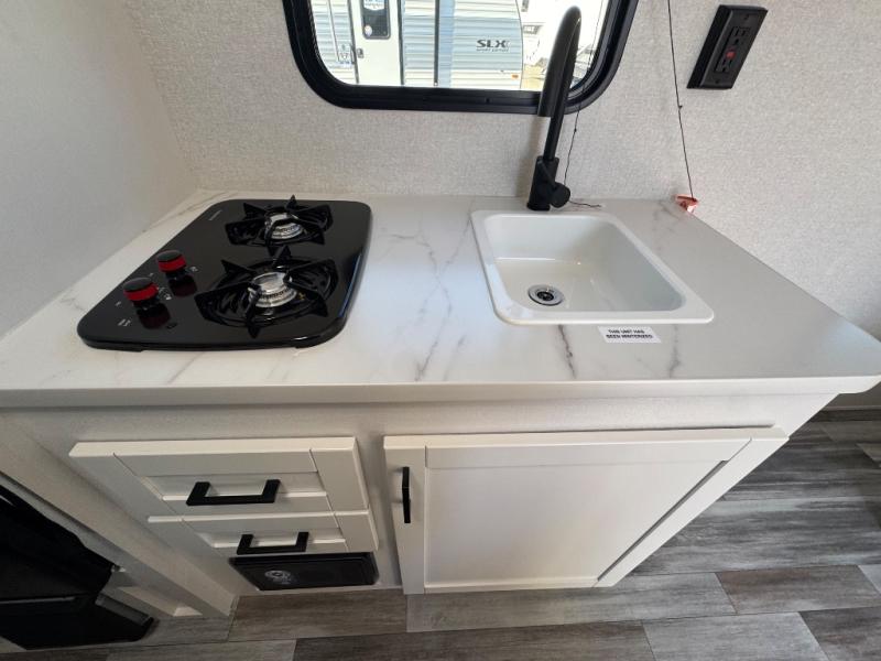 The Jayco Jay Flight SLX travel trailer is quite easy to own because it is lightweight for an easier towing experience. Built on a fully integrated A-frame with galvanized-steel, impact-resistant wheel wells, the Jay Flight SLX has quality at its very foundation. That quality continues on to the electric self-adjusting brakes, easy-lube hubs, Magnum Truss roof system, and LP quick connect. Some of what the mandatory Customer Value Package includes is backup camera prep, Keyed-Alike entry and baggage doors, and an on-demand tankless water heater.