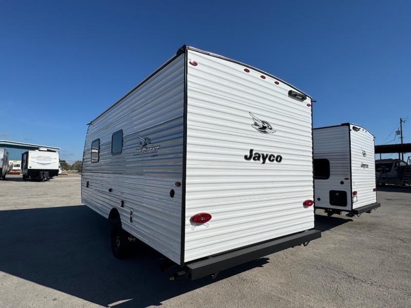 The Jayco Jay Flight SLX travel trailer is quite easy to own because it is lightweight for an easier towing experience. Built on a fully integrated A-frame with galvanized-steel, impact-resistant wheel wells, the Jay Flight SLX has quality at its very foundation. That quality continues on to the electric self-adjusting brakes, easy-lube hubs, Magnum Truss roof system, and LP quick connect. Some of what the mandatory Customer Value Package includes is backup camera prep, Keyed-Alike entry and baggage doors, and an on-demand tankless water heater.