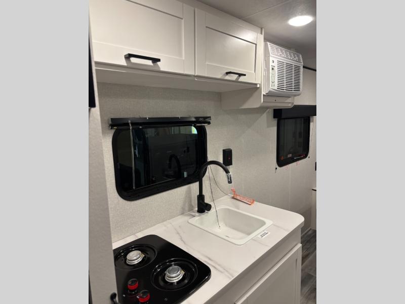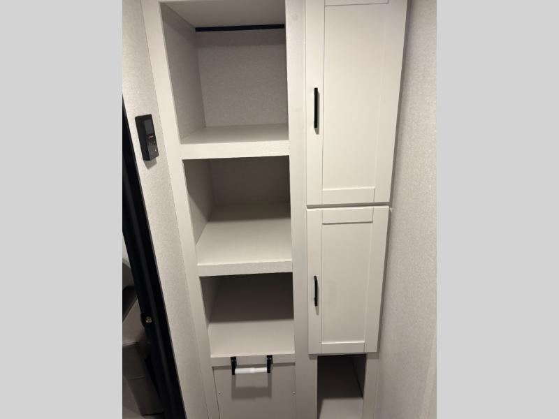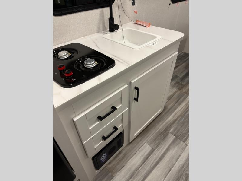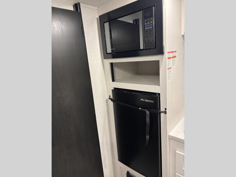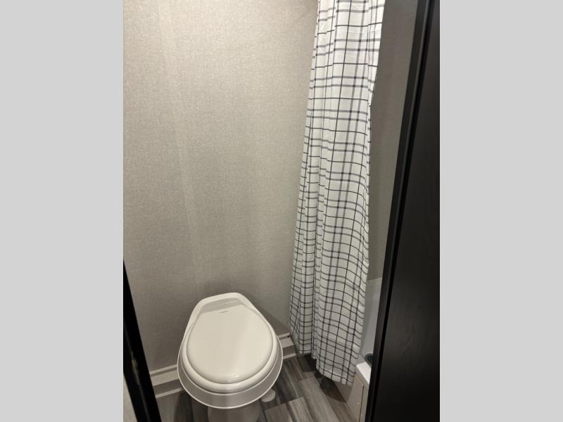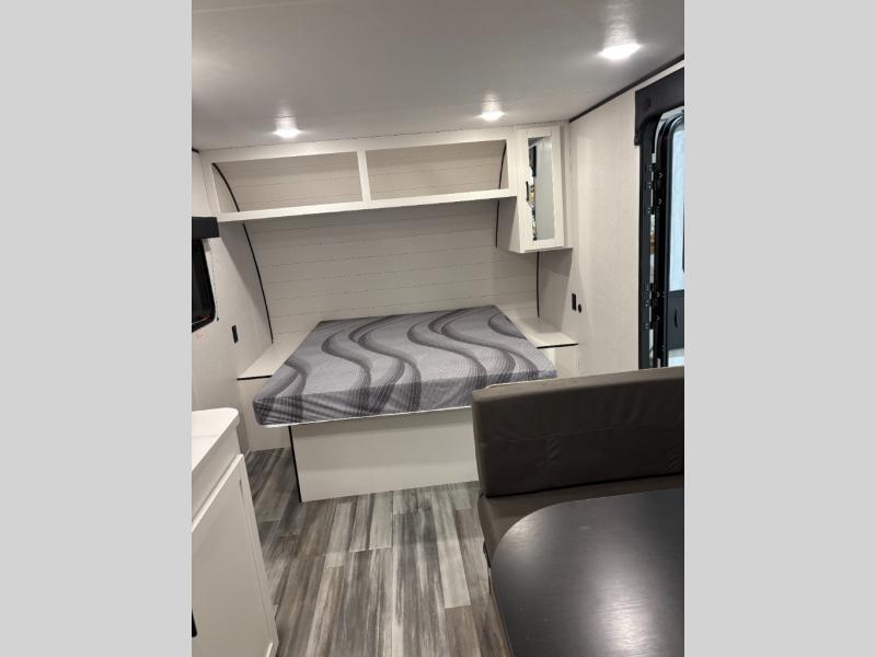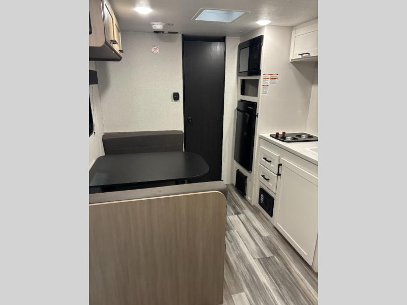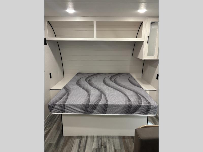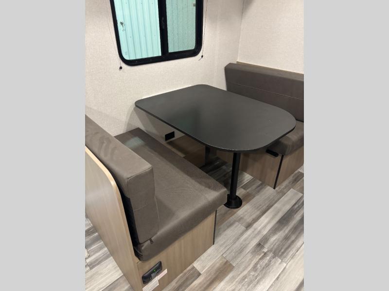 This travel trailer includes everything you need for fun trips at the lake. When you arrive at the campground, you can unload the exterior storage, then put out the 10' power awning. The booth dinette inside will provide a place to dine together, and the full rear bath with a shower will make it easier than ever to clean up after a day of hiking. A front RV queen bed will provide a great night's rest, and the overhead shelf will be perfect for books or personal belongings.