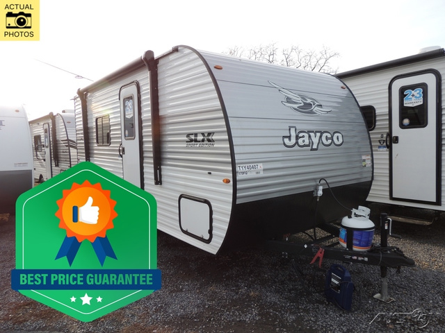 The Jayco Jay Flight SLX travel trailer is quite easy to own because it is lightweight for an easier towing experience. Built on a fully integrated A-frame with galvanized-steel, impact-resistant wheel wells, the Jay Flight SLX has quality at its very foundation. That quality continues on to the electric self-adjusting brakes, easy-lube hubs, Magnum Truss roof system, and LP quick connect. Some of what the mandatory Customer Value Package includes is backup camera prep, Keyed-Alike entry and baggage doors, and an on-demand tankless water heater.