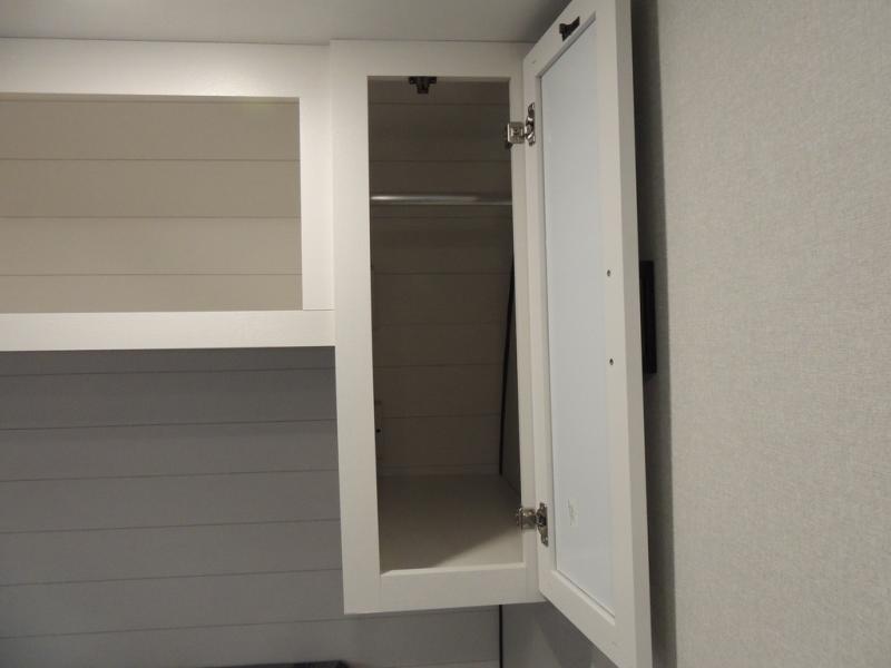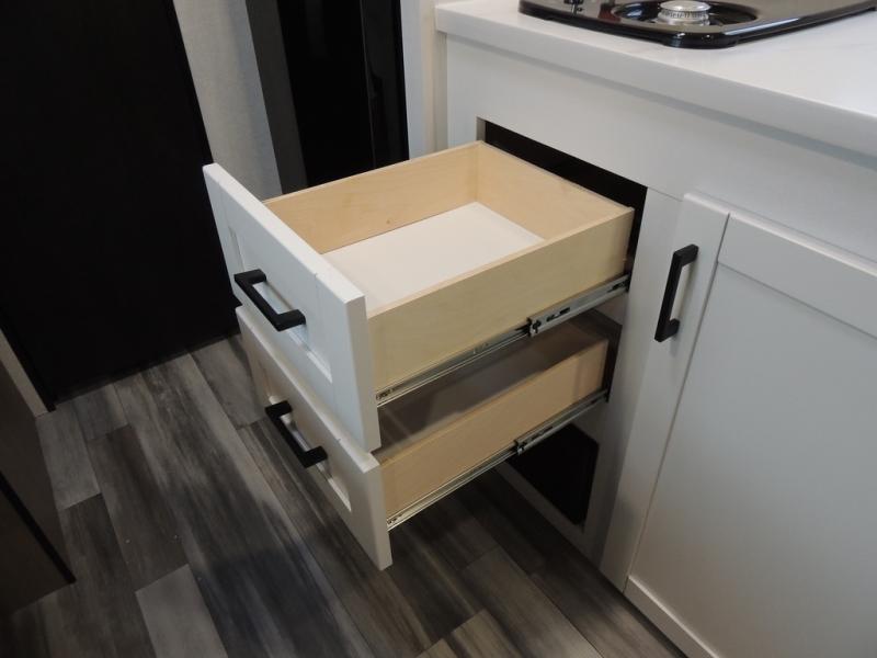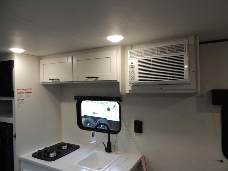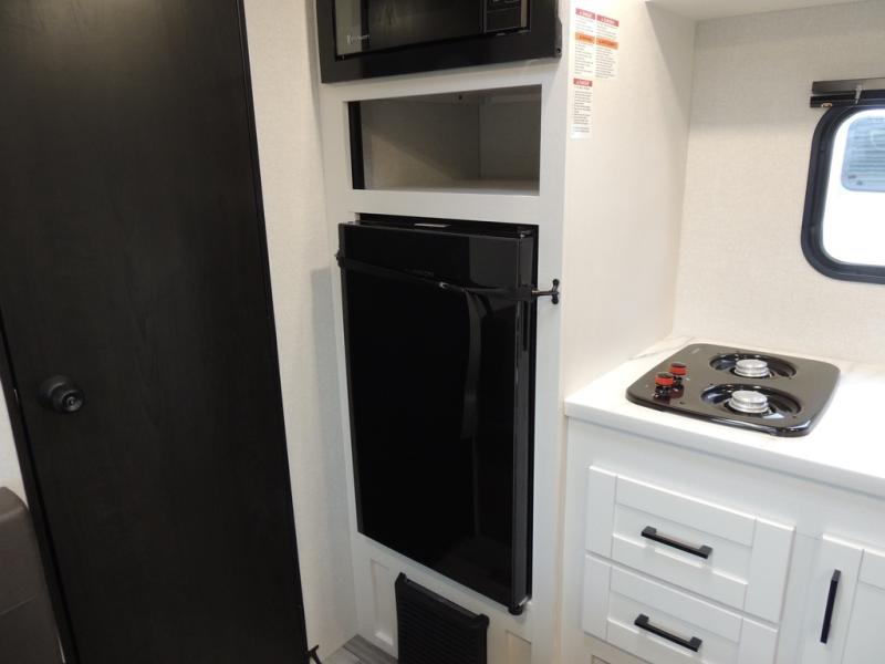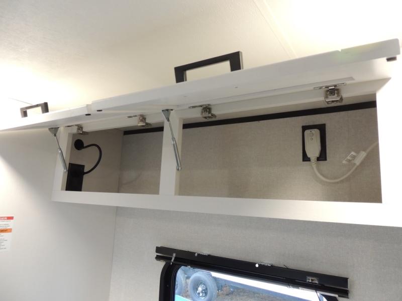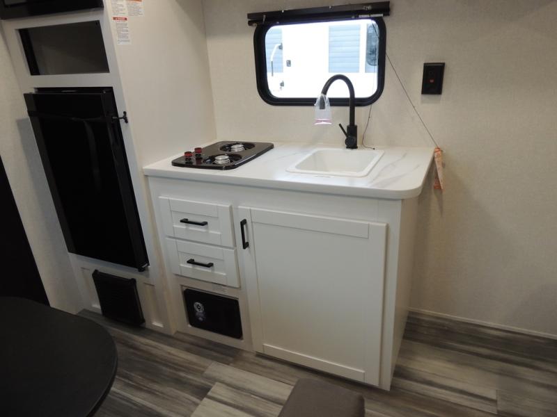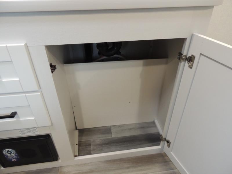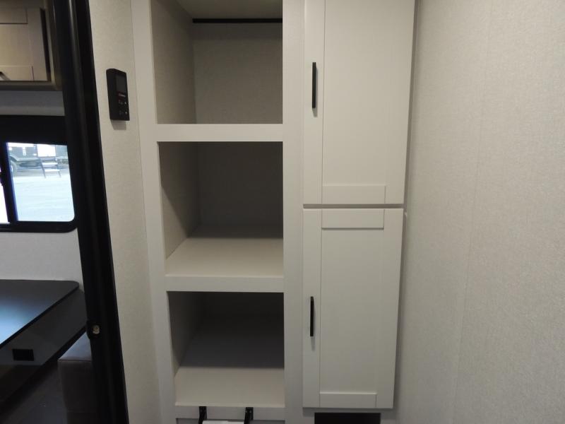 This travel trailer includes everything you need for fun trips at the lake. When you arrive at the campground, you can unload the exterior storage, then put out the 10' power awning. The booth dinette inside will provide a place to dine together, and the full rear bath with a shower will make it easier than ever to clean up after a day of hiking. A front RV queen bed will provide a great night's rest, and the overhead shelf will be perfect for books or personal belongings.