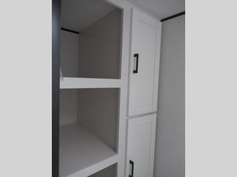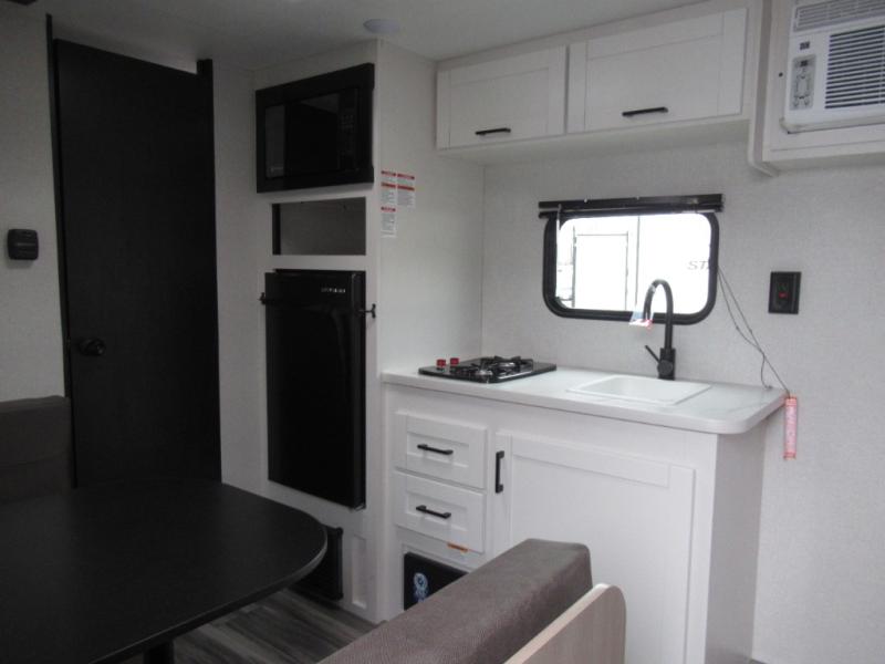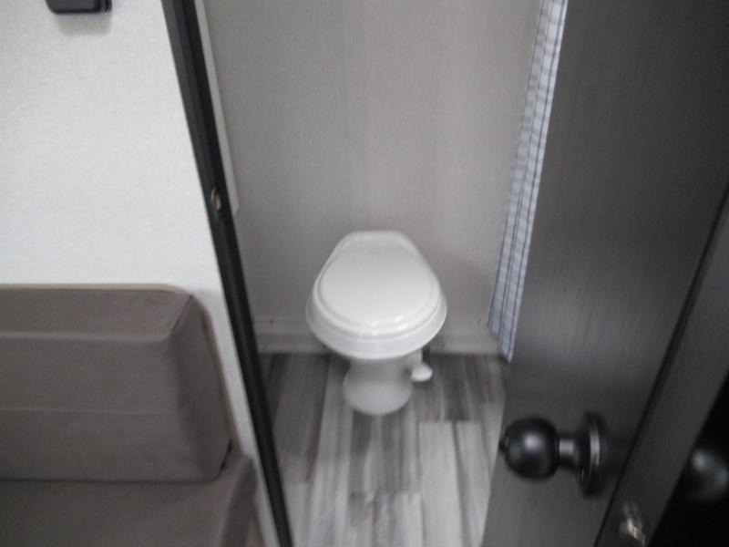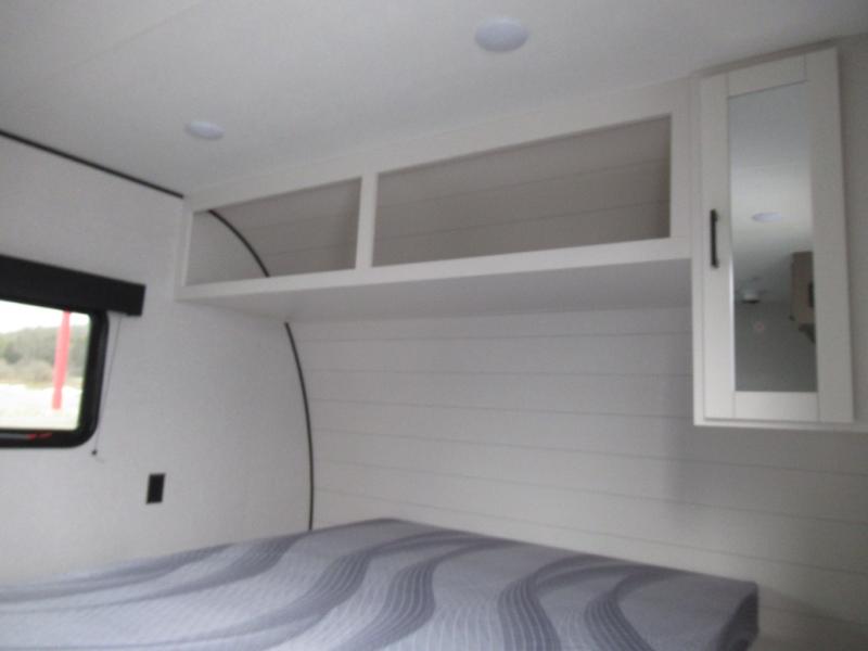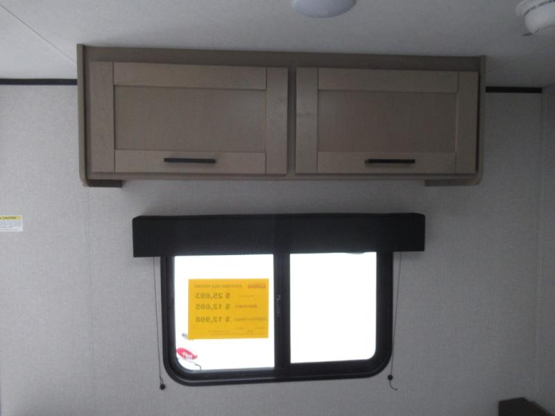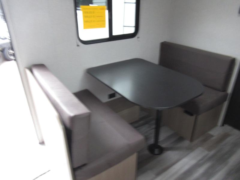This travel trailer includes everything you need for fun trips at the lake. When you arrive at the campground, you can unload the exterior storage, then put out the 10' power awning. The booth dinette inside will provide a place to dine together, and the full rear bath with a shower will make it easier than ever to clean up after a day of hiking. A front RV queen bed will provide a great night's rest, and the overhead shelf will be perfect for books or personal belongings.