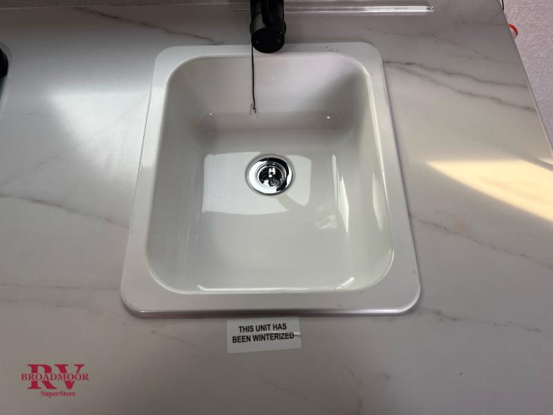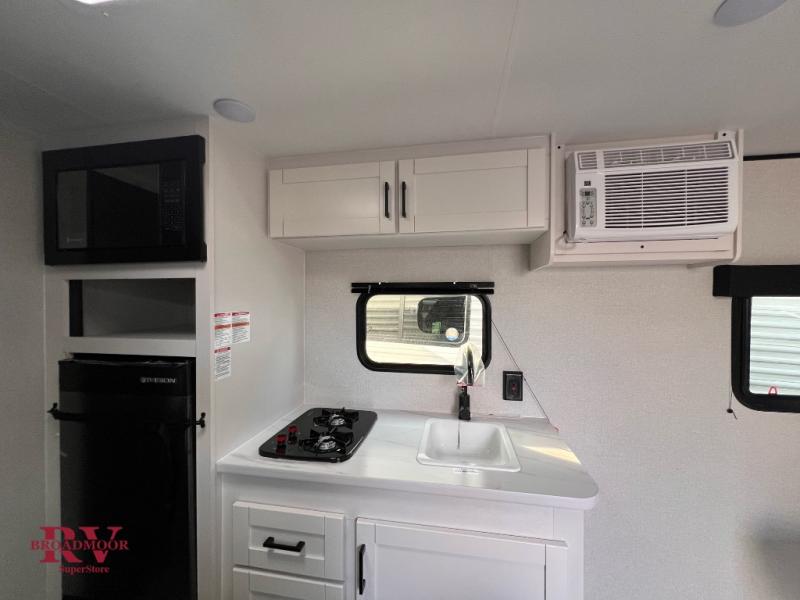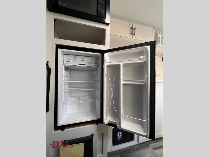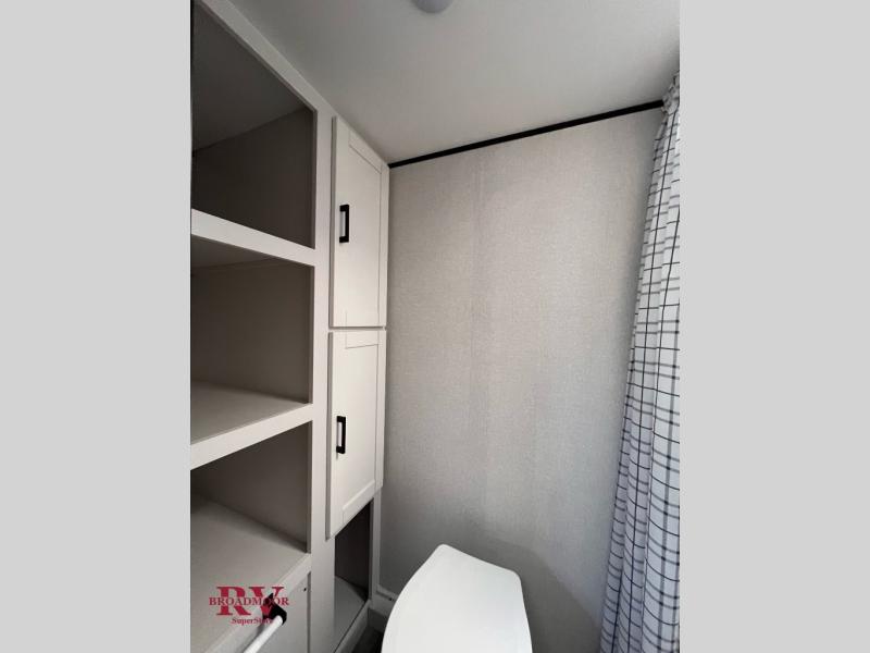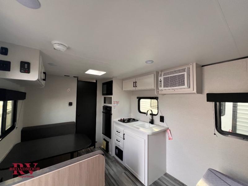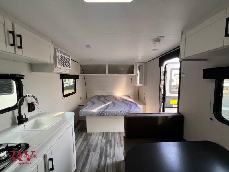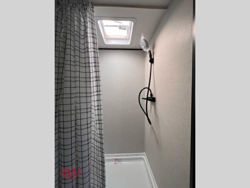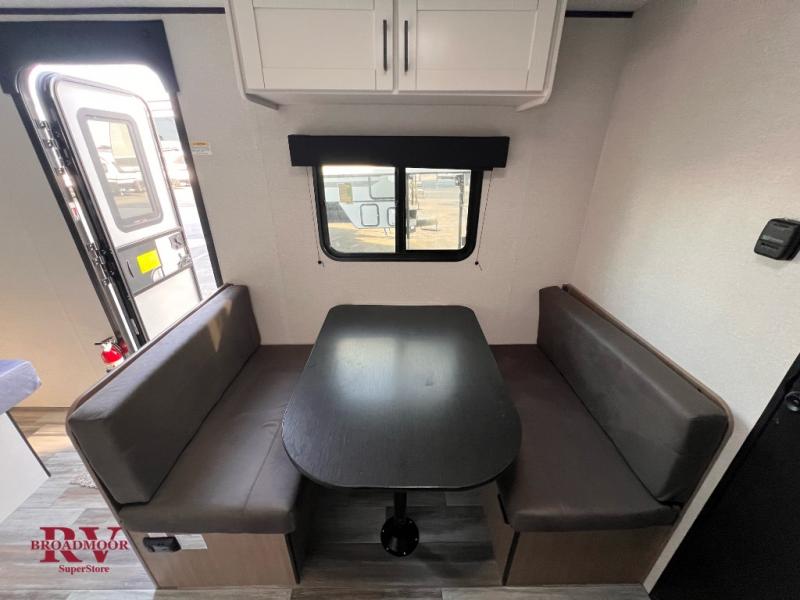 This travel trailer includes everything you need for fun trips at the lake. When you arrive at the campground, you can unload the exterior storage, then put out the 10' power awning. The booth dinette inside will provide a place to dine together, and the full rear bath with a shower will make it easier than ever to clean up after a day of hiking. A front RV queen bed will provide a great night's rest, and the overhead shelf will be perfect for books or personal belongings.