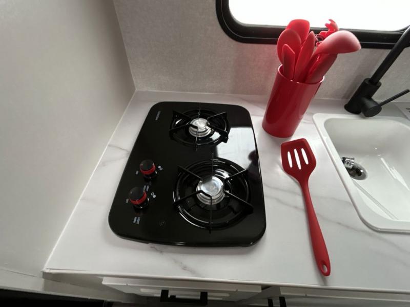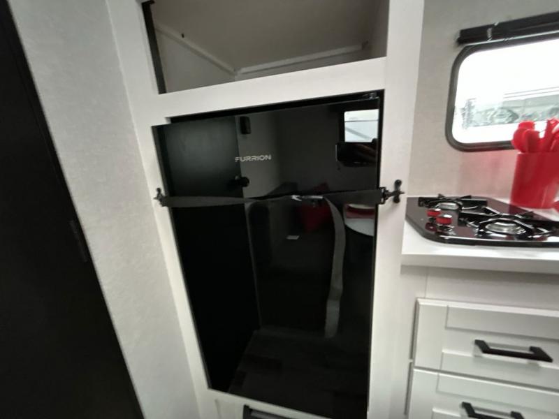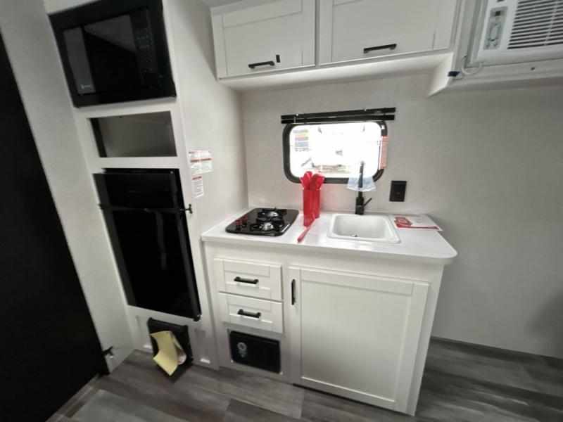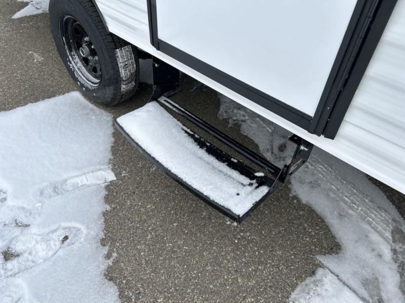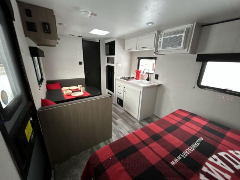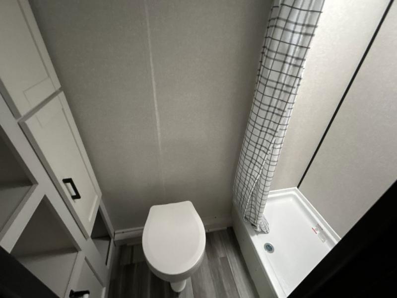 This travel trailer includes everything you need for fun trips at the lake. When you arrive at the campground, you can unload the exterior storage, then put out the 10' power awning. The booth dinette inside will provide a place to dine together, and the full rear bath with a shower will make it easier than ever to clean up after a day of hiking. A front RV queen bed will provide a great night's rest, and the overhead shelf will be perfect for books or personal belongings.