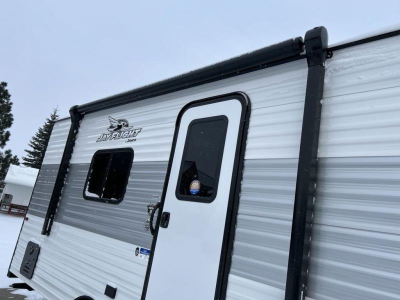 The Jayco Jay Flight SLX travel trailer is quite easy to own because it is lightweight for an easier towing experience. Built on a fully integrated A-frame with galvanized-steel, impact-resistant wheel wells, the Jay Flight SLX has quality at its very foundation. That quality continues on to the electric self-adjusting brakes, easy-lube hubs, Magnum Truss roof system, and LP quick connect. Some of what the mandatory Customer Value Package includes is backup camera prep, Keyed-Alike entry and baggage doors, and an on-demand tankless water heater.