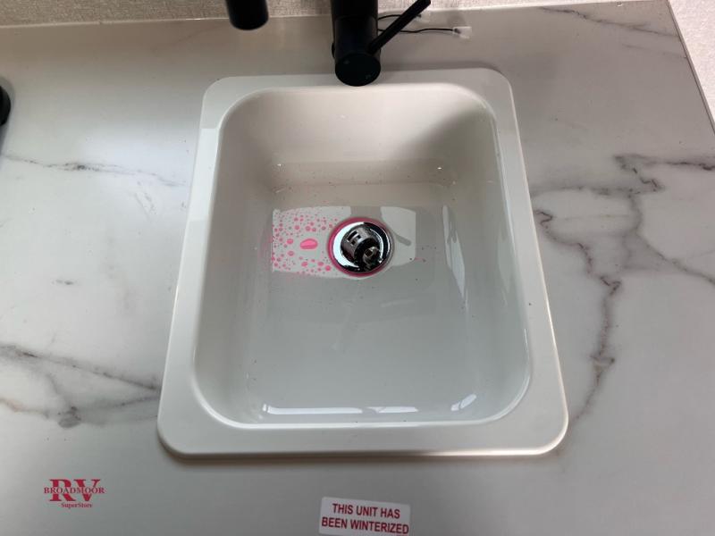 This travel trailer includes everything you need for fun trips at the lake. When you arrive at the campground, you can unload the exterior storage, then put out the 10' power awning. The booth dinette inside will provide a place to dine together, and the full rear bath with a shower will make it easier than ever to clean up after a day of hiking. A front RV queen bed will provide a great night's rest, and the overhead shelf will be perfect for books or personal belongings.