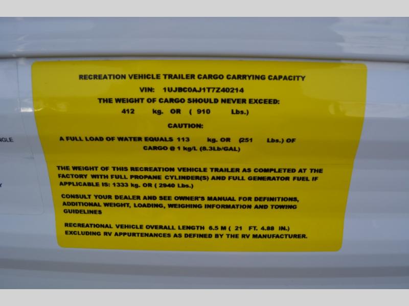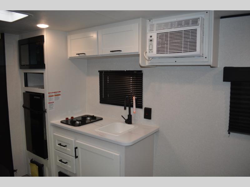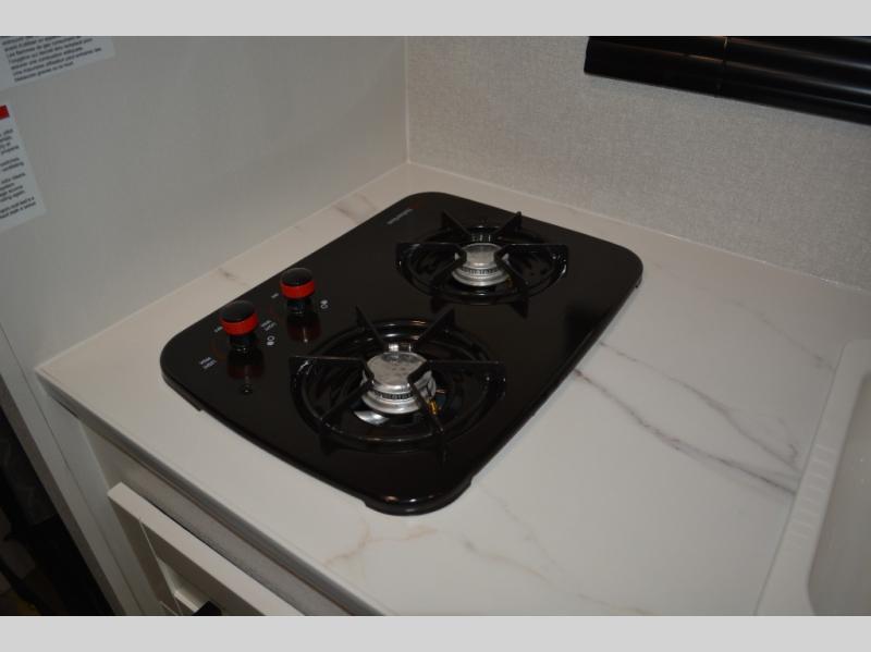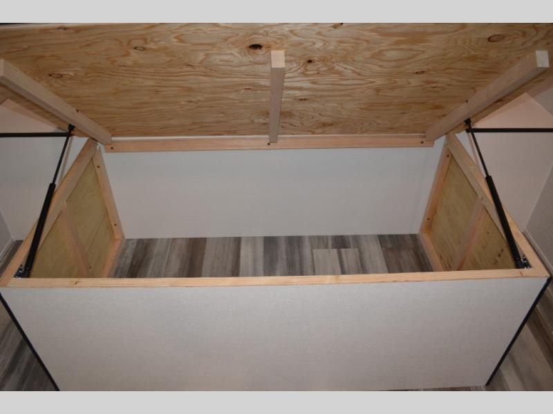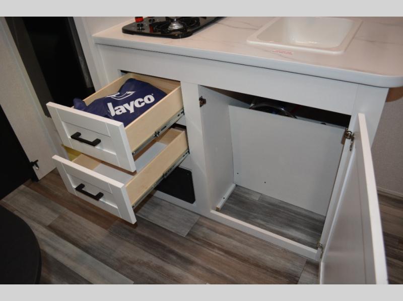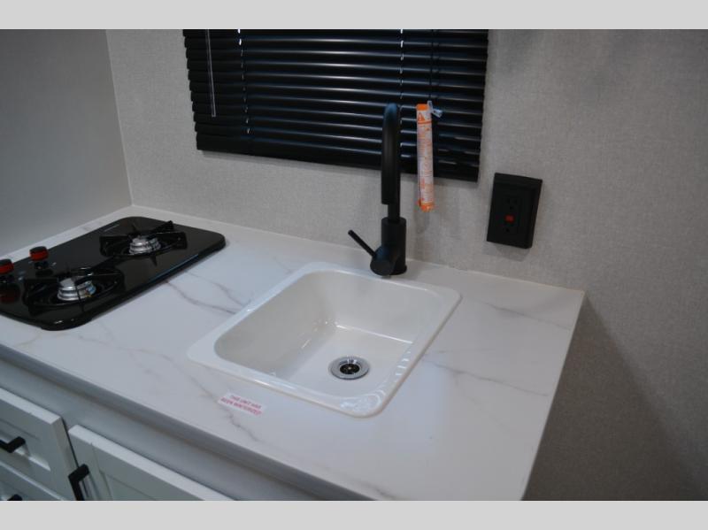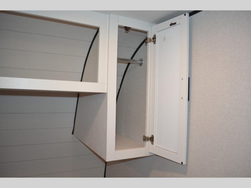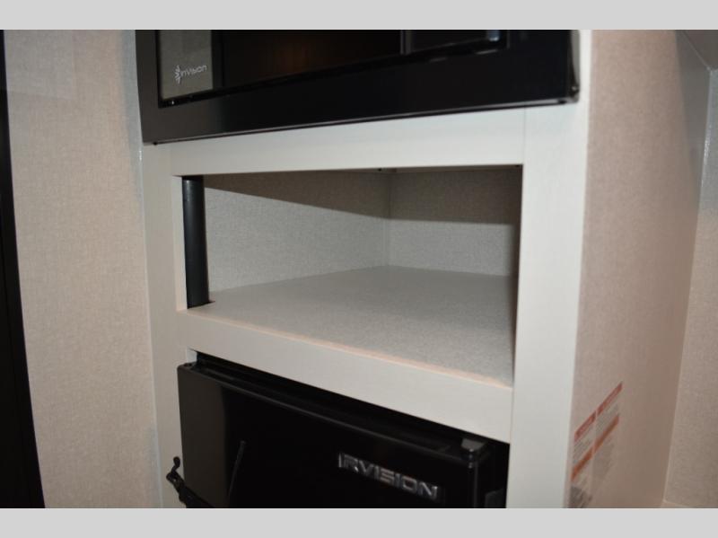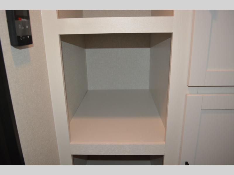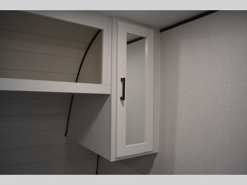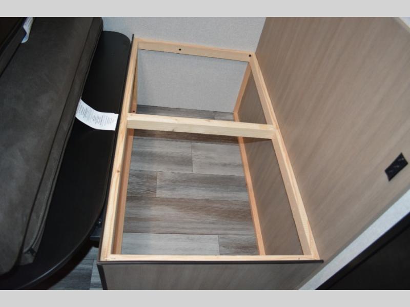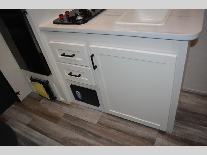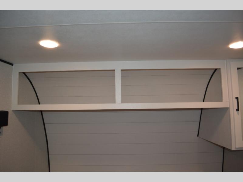 This travel trailer includes everything you need for fun trips at the lake. When you arrive at the campground, you can unload the exterior storage, then put out the 10' power awning. The booth dinette inside will provide a place to dine together, and the full rear bath with a shower will make it easier than ever to clean up after a day of hiking. A front RV queen bed will provide a great night's rest, and the overhead shelf will be perfect for books or personal belongings.