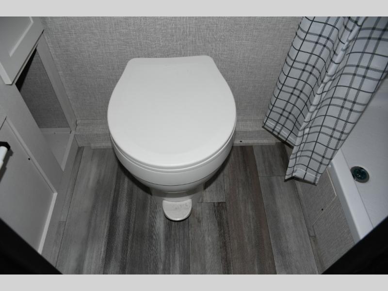 Private rear bathroom with a shower makes camp clean-ups comfortable and convenient. -