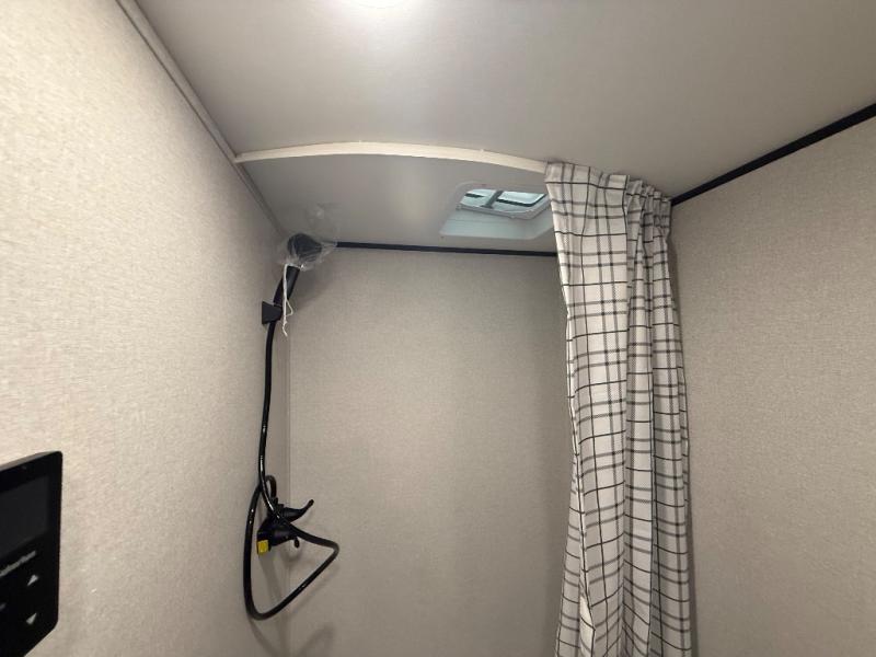 Your crew of six will love camping in this travel trailer! There are double-size bunk beds in the rear corner and a private bath in the other rear corner for easy nighttime use. You will have the front queen bed to yourselves, along with an overhead shelf and a nightstand for your things. And the L-shaped dinette provides a place to dine and play games. The Customer Value Package on this Sport Edition model includes a 19K BTU furnace, stabilizer jacks, a power awning, an entry door with a window and shade prep, and many more stand-out features!