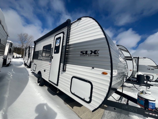 The Jayco Jay Flight SLX travel trailer is quite easy to own because it is lightweight for an easier towing experience. Built on a fully integrated A-frame with galvanized-steel, impact-resistant wheel wells, the Jay Flight SLX has quality at its very foundation. That quality continues on to the electric self-adjusting brakes, easy-lube hubs, and a Magnum Truss roof system. Inside, you'll enjoy vinyl flooring throughout, solid hardwood cabinet doors, residential-style kitchen countertops and many more comforts!