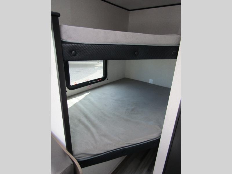 Your crew of six will love camping in this travel trailer! There are double-size bunk beds in the rear corner and a private bath in the other rear corner for easy nighttime use. You will have the front queen bed to yourselves, along with an overhead shelf and a nightstand for your things. And the L-shaped dinette provides a place to dine and play games. The Customer Value Package on this Sport Edition model includes a 19K BTU furnace, stabilizer jacks, a power awning, an entry door with a window and shade prep, and many more stand-out features!