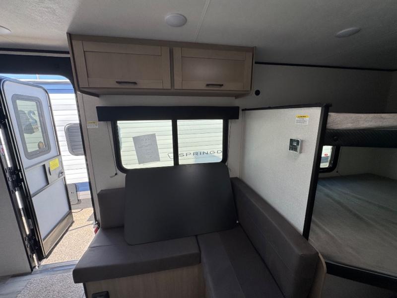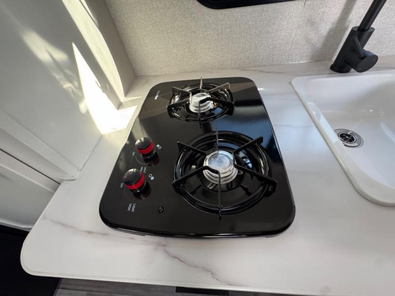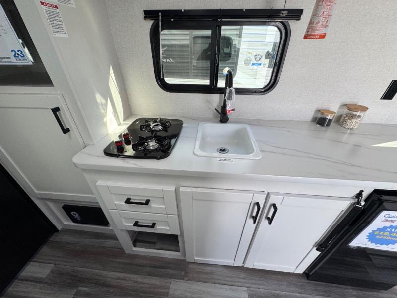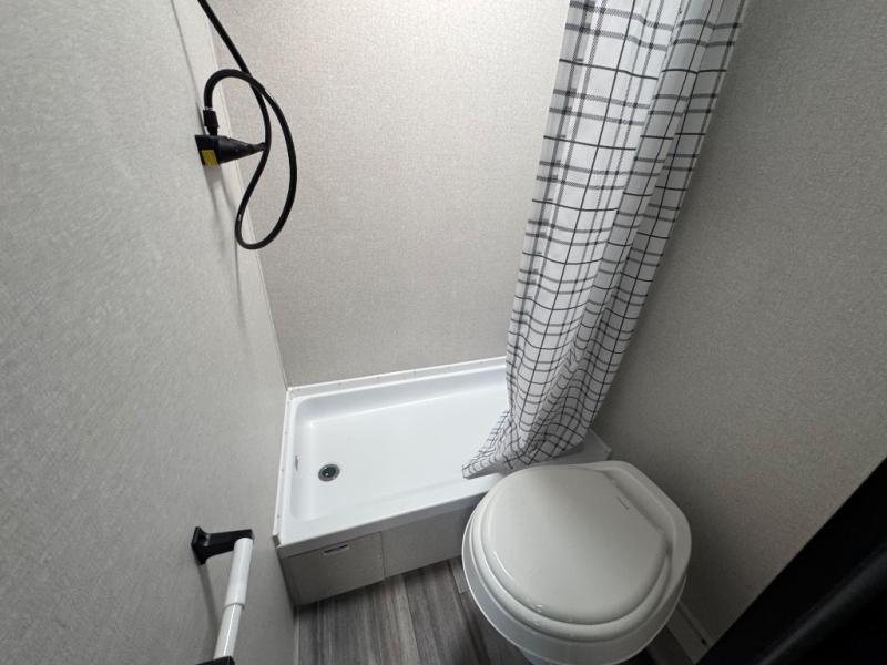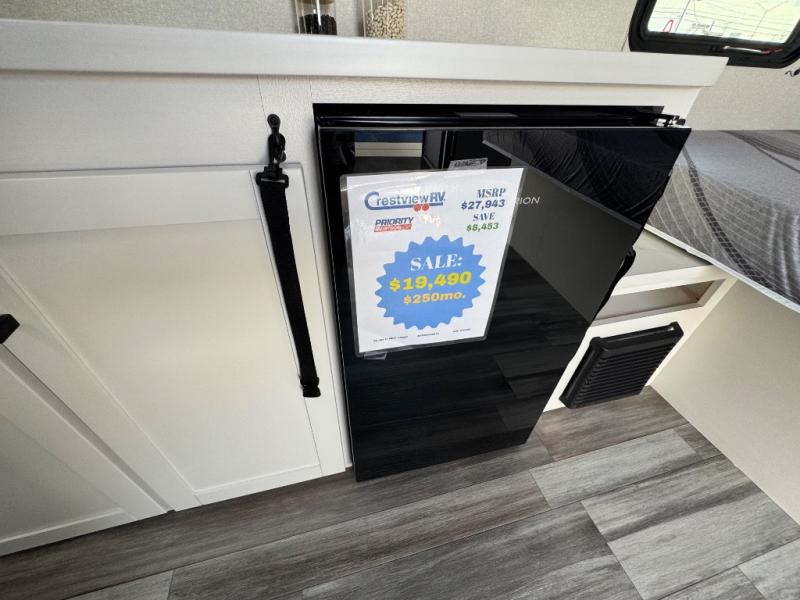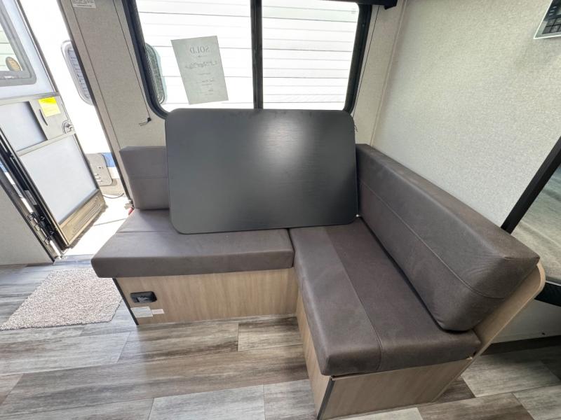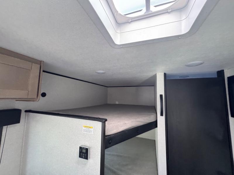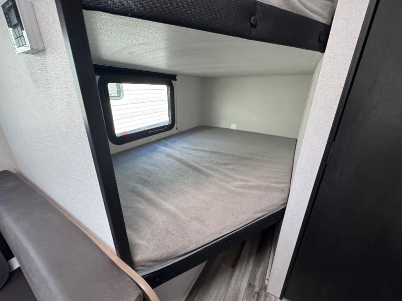 Your crew of six will love camping in this travel trailer! There are double-size bunk beds in the rear corner and a private bath in the other rear corner for easy nighttime use. You will have the front queen bed to yourselves, along with an overhead shelf and a nightstand for your things. And the L-shaped dinette provides a place to dine and play games. The Customer Value Package on this Sport Edition model includes a 19K BTU furnace, stabilizer jacks, a power awning, an entry door with a window and shade prep, and many more stand-out features!