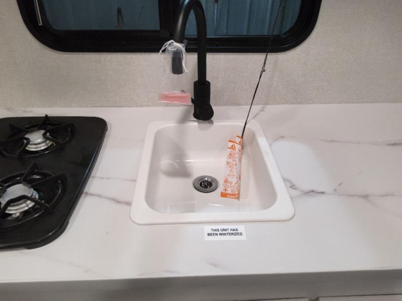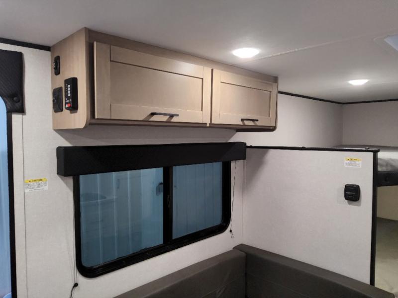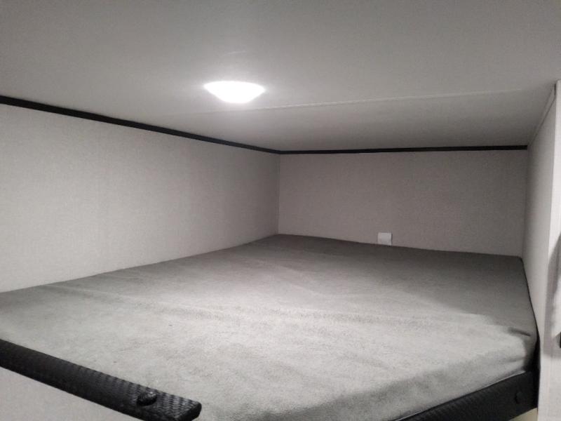Your crew of six will love camping in this travel trailer! There are double-size bunk beds in the rear corner and a private bath in the other rear corner for easy nighttime use. You will have the front queen bed to yourselves, along with an overhead shelf and a nightstand for your things. And the L-shaped dinette provides a place to dine and play games. The Customer Value Package on this Sport Edition model includes a 19K BTU furnace, stabilizer jacks, a power awning, an entry door with a window and shade prep, and many more stand-out features!
