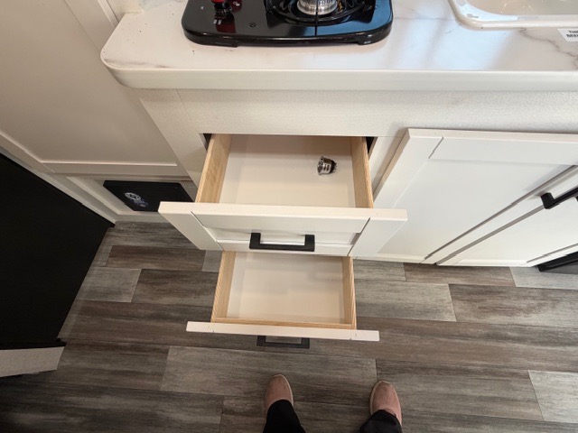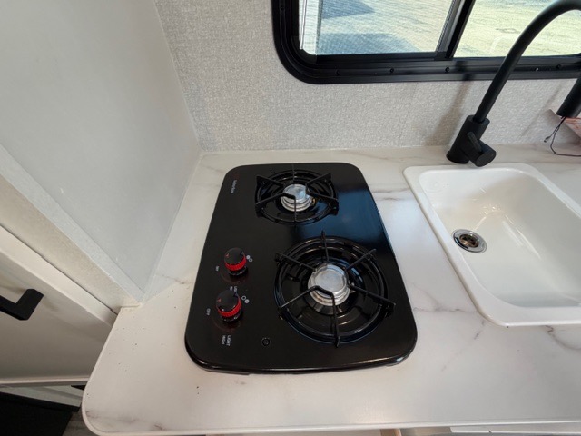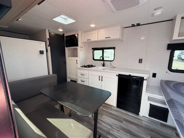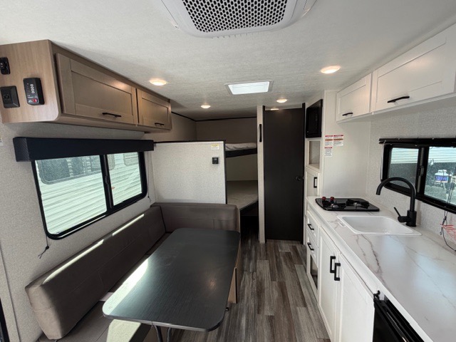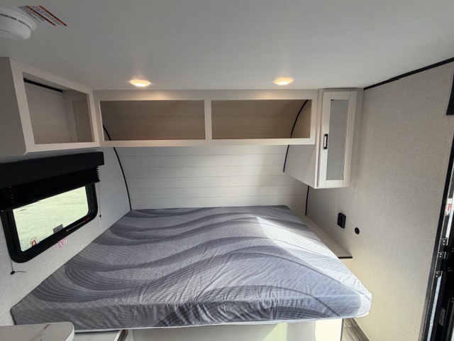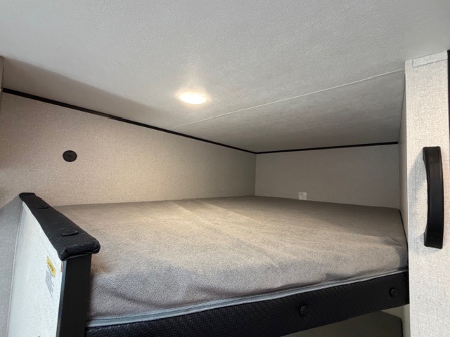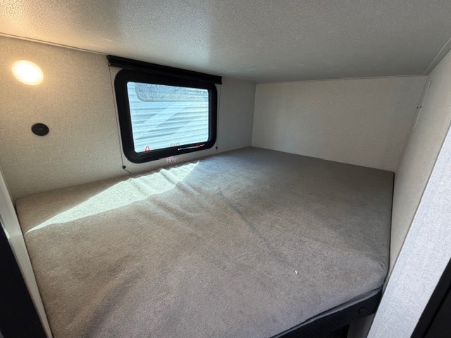 Your crew of six will love camping in this travel trailer! There are double-size bunk beds in the rear corner and a private bath in the other rear corner for easy nighttime use. You will have the front queen bed to yourselves, along with an overhead shelf and a nightstand for your things. And the L-shaped dinette provides a place to dine and play games. The Customer Value Package on this Sport Edition model includes a 19K BTU furnace, stabilizer jacks, a power awning, an entry door with a window and shade prep, and many more stand-out features!