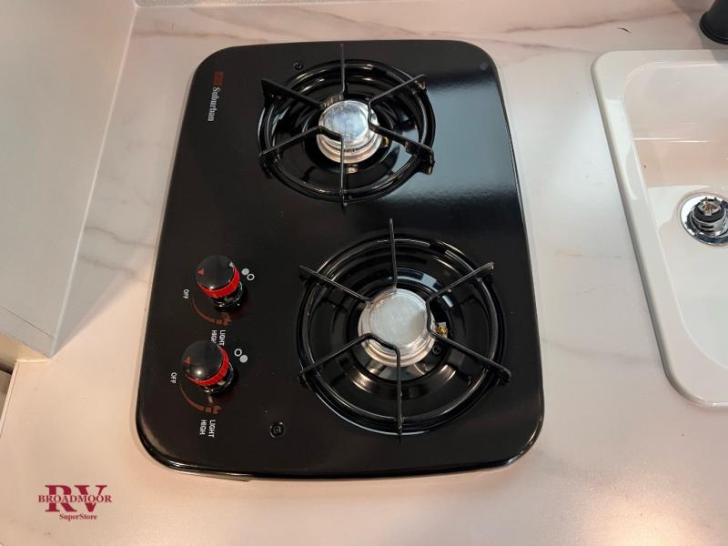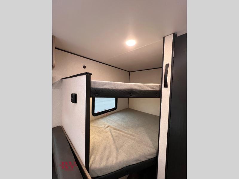 Your crew of six will love camping in this travel trailer! There are double-size bunk beds in the rear corner and a private bath in the other rear corner for easy nighttime use. You will have the front queen bed to yourselves, along with an overhead shelf and a nightstand for your things. And the L-shaped dinette provides a place to dine and play games. The Customer Value Package on this Sport Edition model includes a 19K BTU furnace, stabilizer jacks, a power awning, an entry door with a window and shade prep, and many more stand-out features!