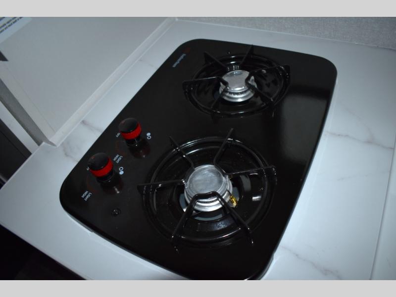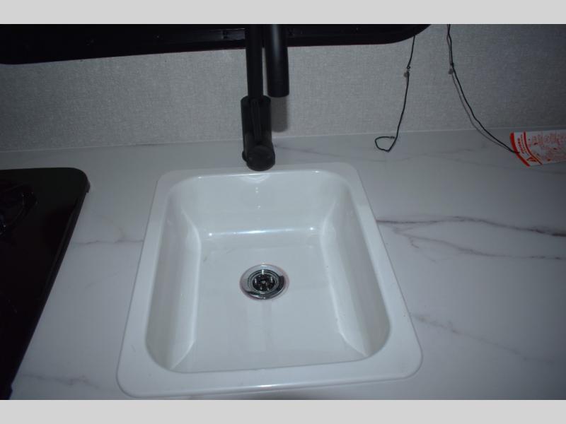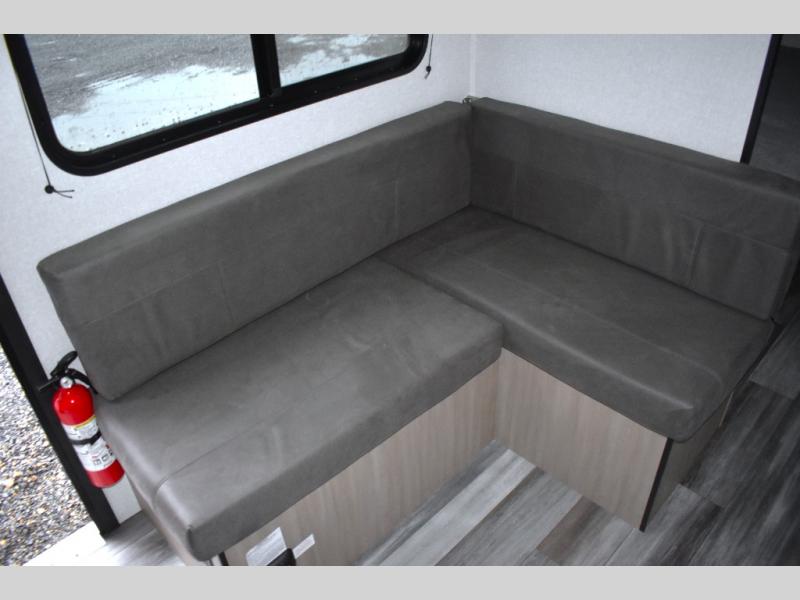 Your crew of six will love camping in this travel trailer! There are double-size bunk beds in the rear corner and a private bath in the other rear corner for easy nighttime use. You will have the front queen bed to yourselves, along with an overhead shelf and a nightstand for your things. And the L-shaped dinette provides a place to dine and play games. The Customer Value Package on this Sport Edition model includes a 19K BTU furnace, stabilizer jacks, a power awning, an entry door with a window and shade prep, and many more stand-out features!