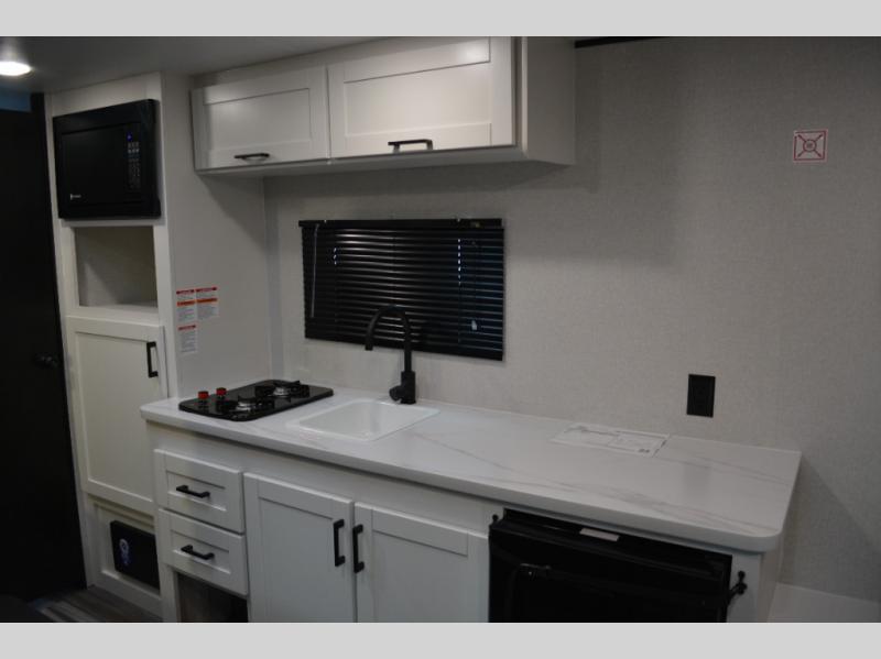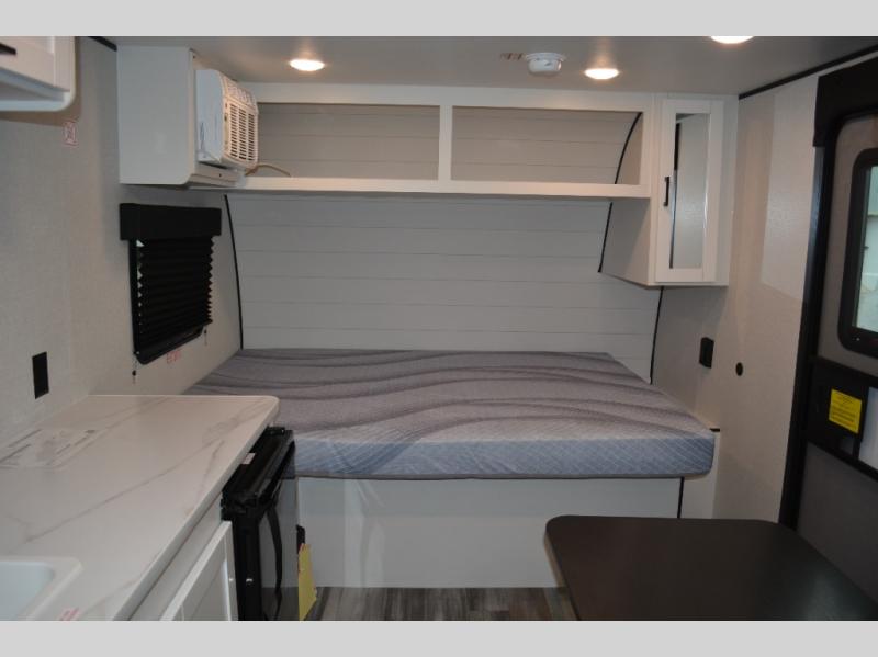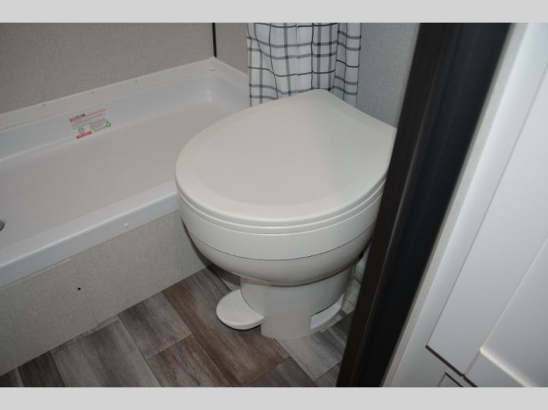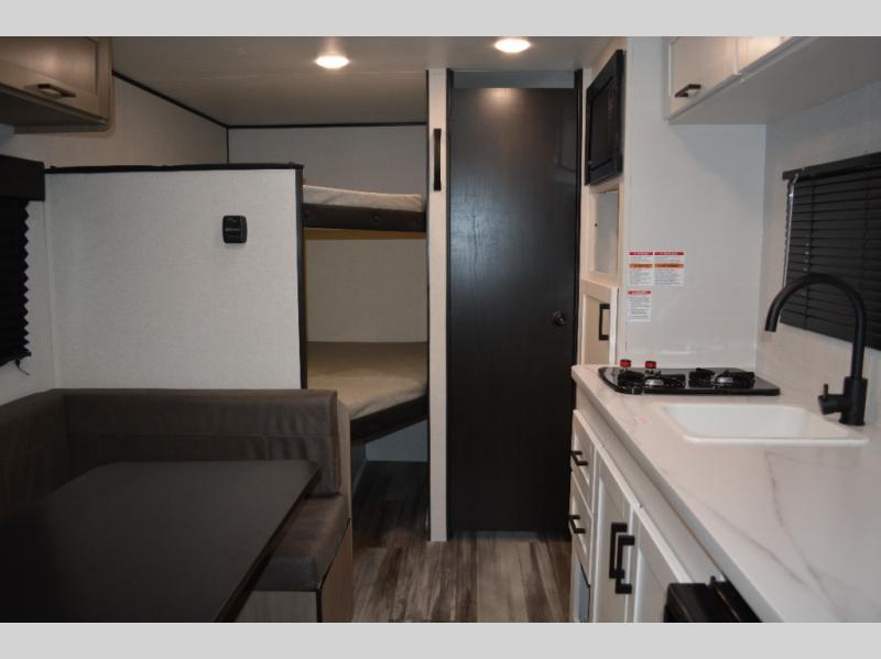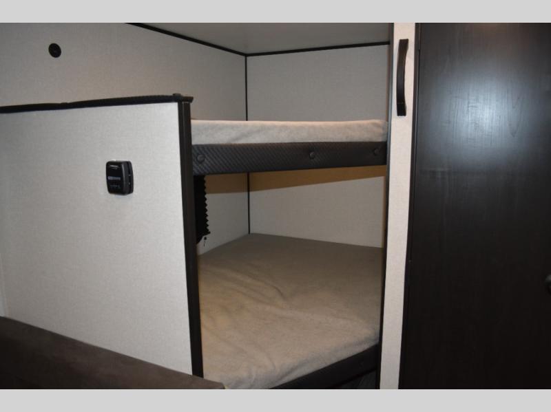 Your crew of six will love camping in this travel trailer! There are double-size bunk beds in the rear corner and a private bath in the other rear corner for easy nighttime use. You will have the front queen bed to yourselves, along with an overhead shelf and a nightstand for your things. And the L-shaped dinette provides a place to dine and play games. The Customer Value Package on this Sport Edition model includes a 19K BTU furnace, stabilizer jacks, a power awning, an entry door with a window and shade prep, and many more stand-out features!
