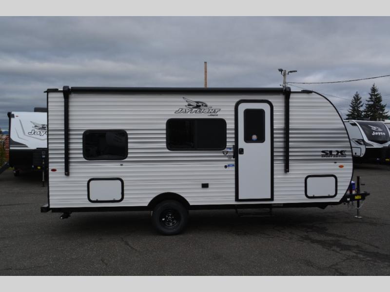 The Jayco Jay Flight SLX travel trailer is quite easy to own because it is lightweight for an easier towing experience. Built on a fully integrated A-frame with galvanized-steel, impact-resistant wheel wells, the Jay Flight SLX has quality at its very foundation. That quality continues on to the electric self-adjusting brakes, easy-lube hubs, and a Magnum Truss roof system. Inside, you'll enjoy vinyl flooring throughout, solid hardwood cabinet doors, residential-style kitchen countertops and many more comforts!
