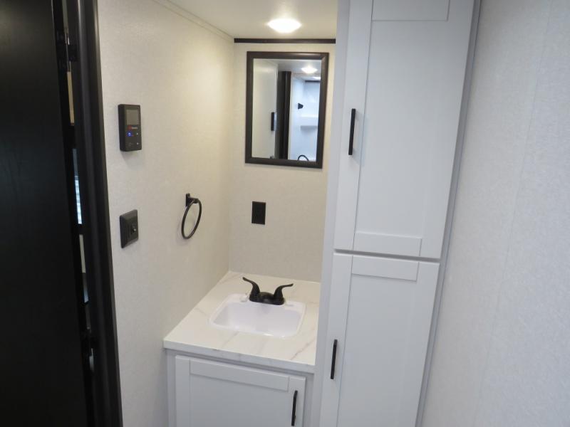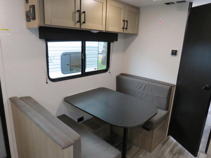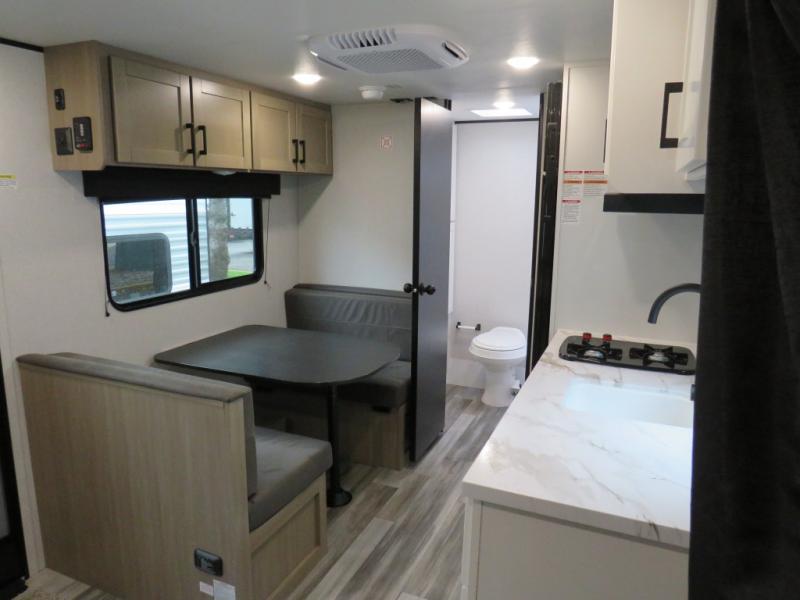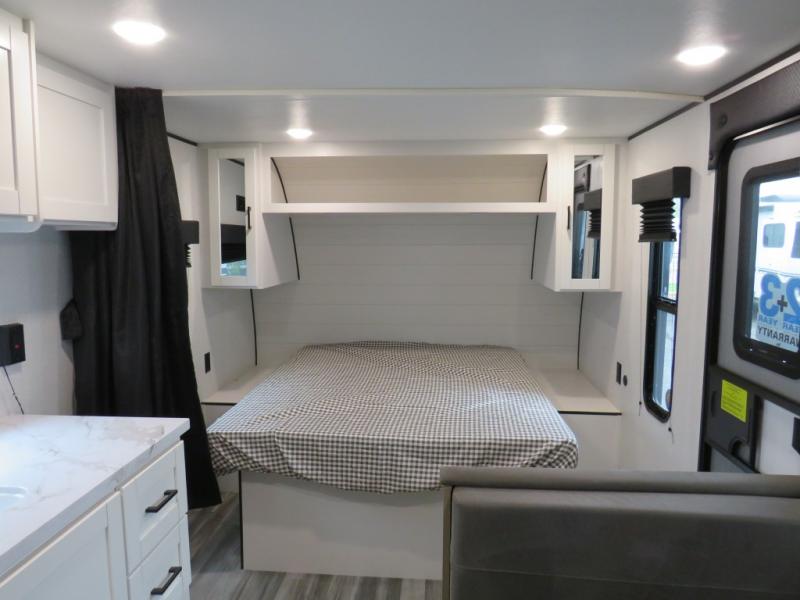 This travel trailer includes everything you need for fun trips at the lake. When you arrive at the campground, you can unload the exterior storage, then put out the 12' power awning with LED lights. There is also an LP Quick Connect if you want to hook up your own grill! The booth dinette inside will provide a place to dine together, and the full rear bath with a tub/shower will make bath time easier than ever for little ones. A front RV queen bed will provide a great night's rest, and the privacy curtain will be appreciated when you're getting dressed in the morning. The optional STX Edition can be added on this model which includes 16 in. off-road tires, triple entry steps, a power tongue jack, and more!