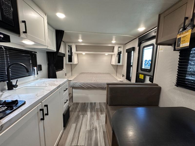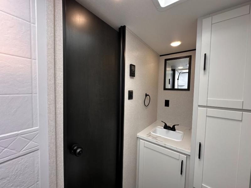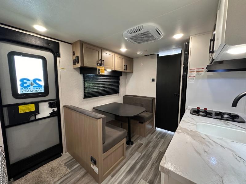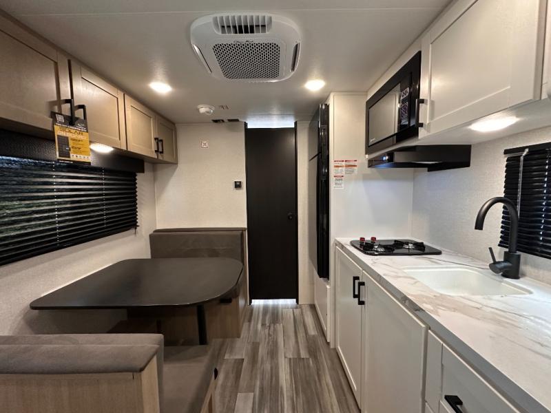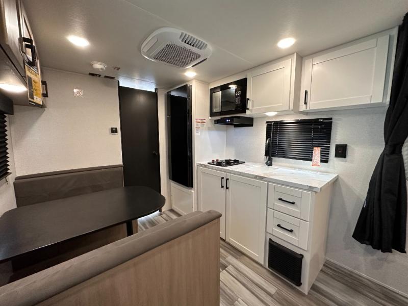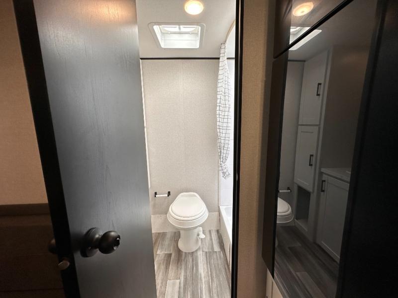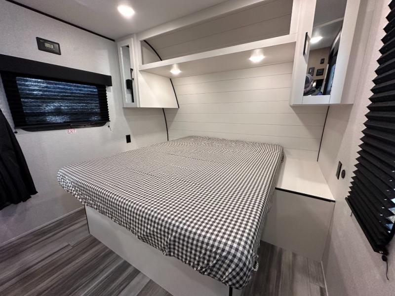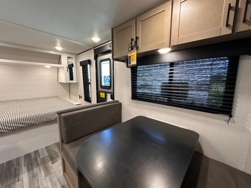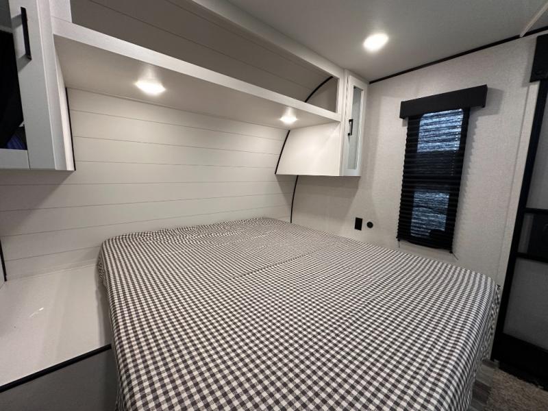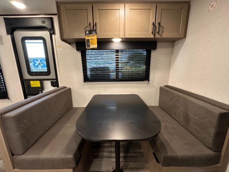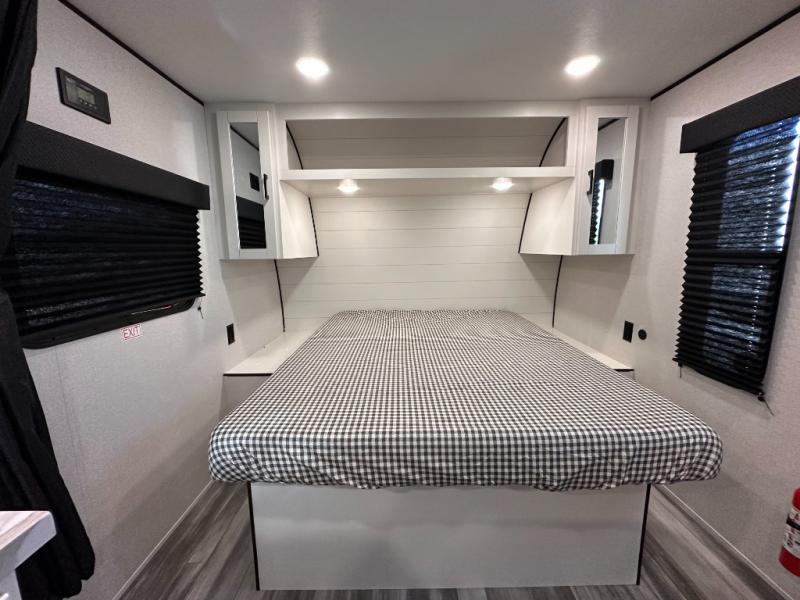 This travel trailer includes everything you need for fun trips at the lake. When you arrive at the campground, you can unload the exterior storage, then put out the 12' power awning with LED lights. There is also an LP Quick Connect if you want to hook up your own grill! The booth dinette inside will provide a place to dine together, and the full rear bath with a tub/shower will make bath time easier than ever for little ones. A front RV queen bed will provide a great night's rest, and the privacy curtain will be appreciated when you're getting dressed in the morning. The optional STX Edition can be added on this model which includes 16 in. off-road tires, triple entry steps, a power tongue jack, and more!