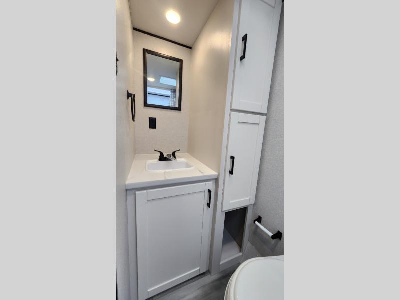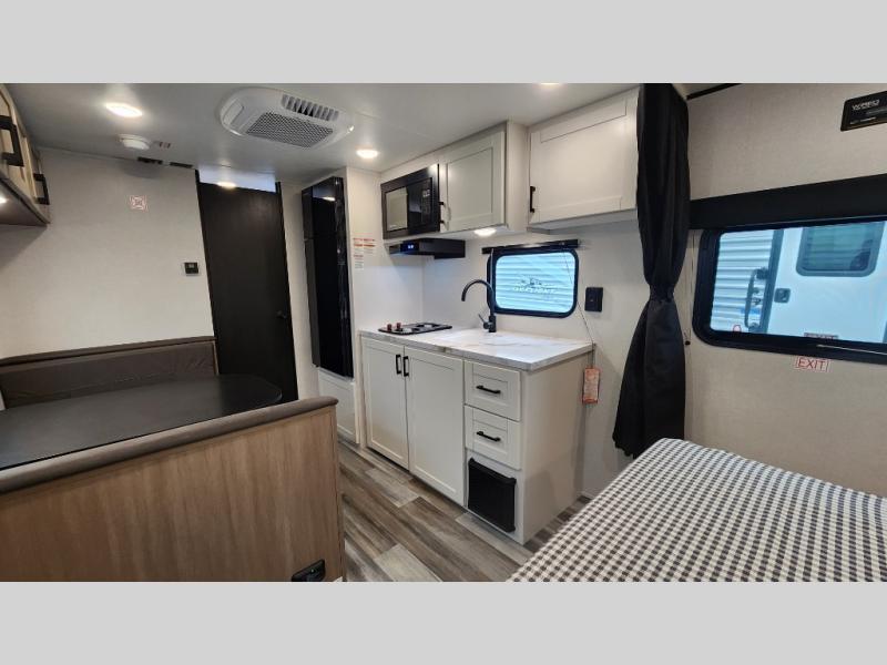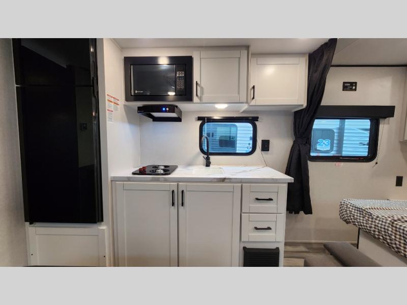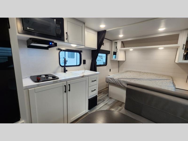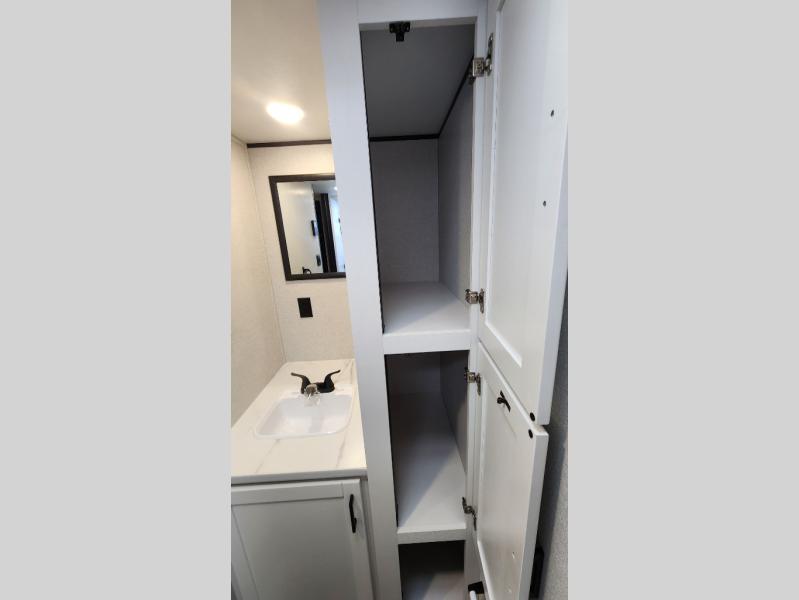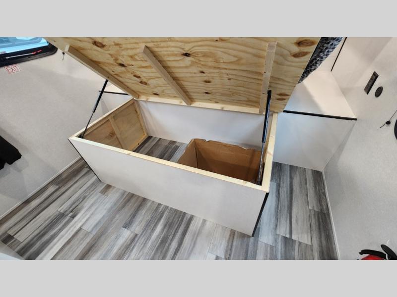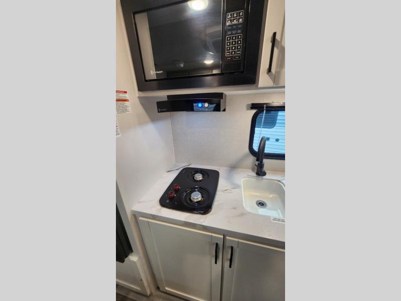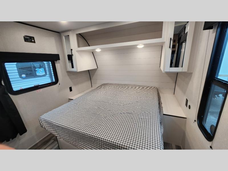This travel trailer includes everything you need for fun trips at the lake. When you arrive at the campground, you can unload the exterior storage, then put out the 12' power awning with LED lights. There is also an LP Quick Connect if you want to hook up your own grill! The booth dinette inside will provide a place to dine together, and the full rear bath with a tub/shower will make bath time easier than ever for little ones. A front RV queen bed will provide a great night's rest, and the privacy curtain will be appreciated when you're getting dressed in the morning.