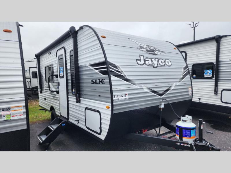 The Jayco Jay Flight SLX travel trailer is quite easy to own because it is lightweight for an easier towing experience. Built on a fully integrated A-frame with galvanized-steel, impact-resistant wheel wells, the Jay Flight SLX has quality at its very foundation. That quality continues on to the electric self-adjusting brakes, easy-lube hubs, Magnum Truss roof system, and LP quick connect. Some of what the mandatory Customer Value Package includes is backup camera prep, Keyed-Alike entry and baggage doors, and an on-demand tankless water heater.
