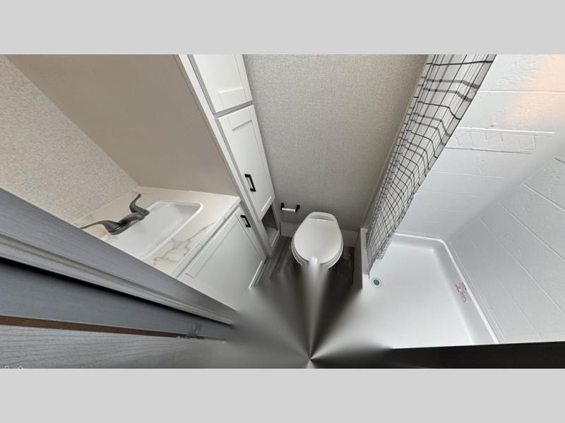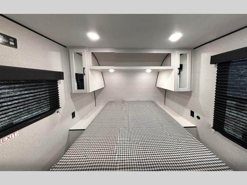 This travel trailer includes everything you need for fun trips at the lake. When you arrive at the campground, you can unload the exterior storage, then put out the 12' power awning with LED lights. There is also an LP Quick Connect if you want to hook up your own grill! The booth dinette inside will provide a place to dine together, and the full rear bath with a tub/shower will make bath time easier than ever for little ones. A front RV queen bed will provide a great night's rest, and the privacy curtain will be appreciated when you're getting dressed in the morning.