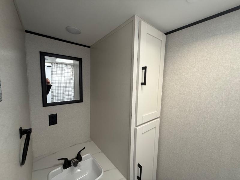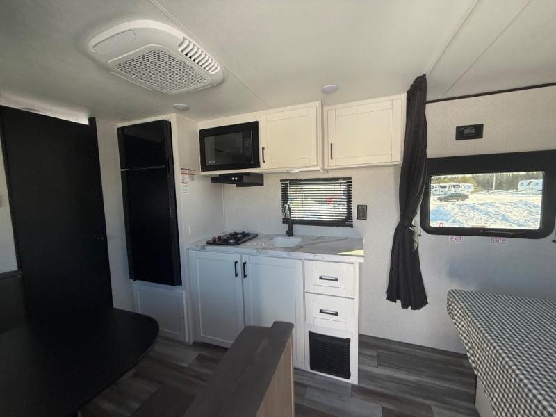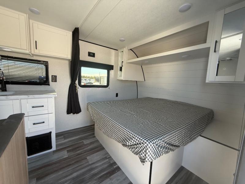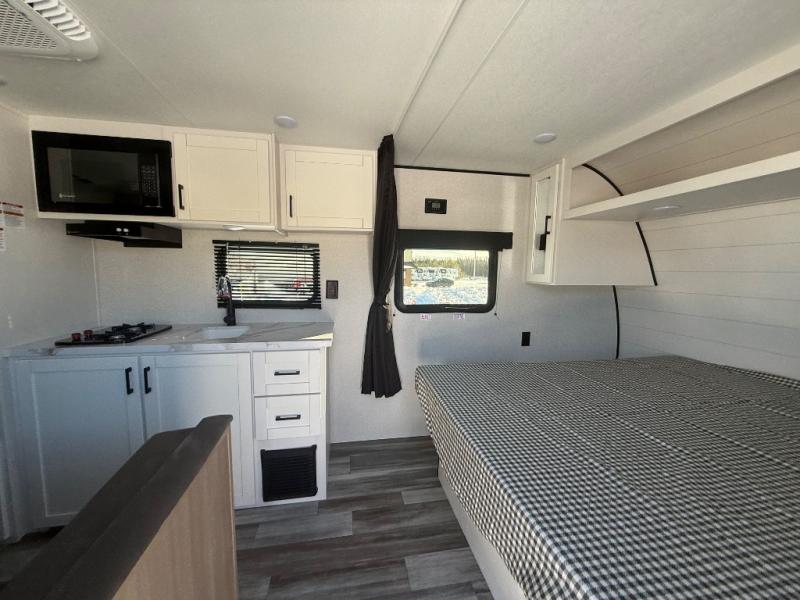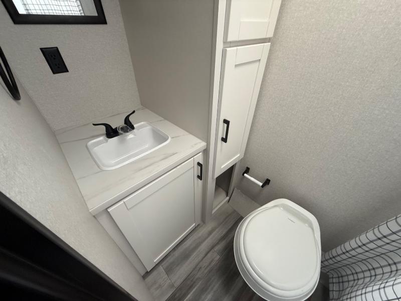 This travel trailer includes everything you need for fun trips at the lake. When you arrive at the campground, you can unload the exterior storage, then put out the 12' power awning with LED lights. There is also an LP Quick Connect if you want to hook up your own grill! The booth dinette inside will provide a place to dine together, and the full rear bath with a tub/shower will make bath time easier than ever for little ones. A front RV queen bed will provide a great night's rest, and the privacy curtain will be appreciated when you're getting dressed in the morning.