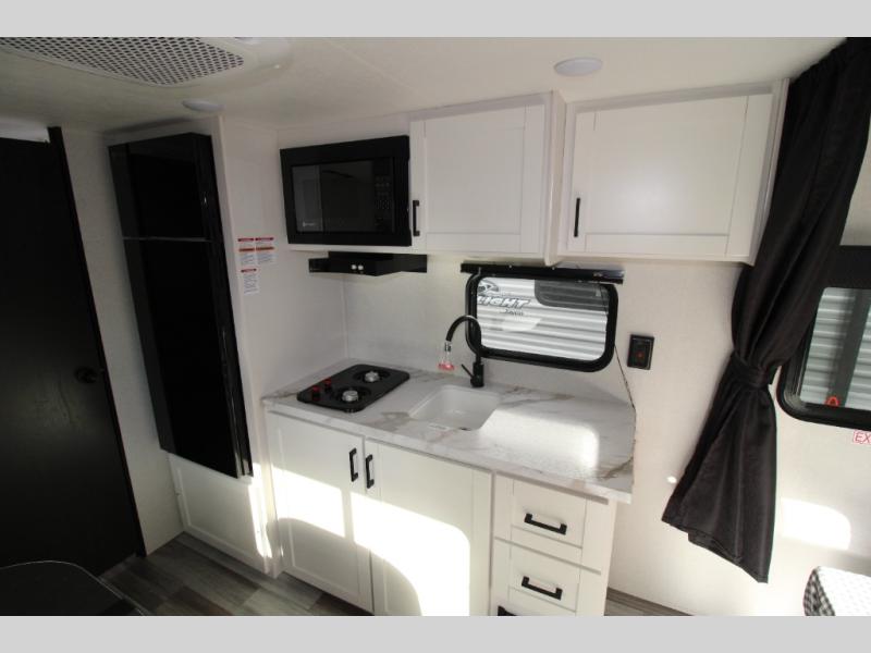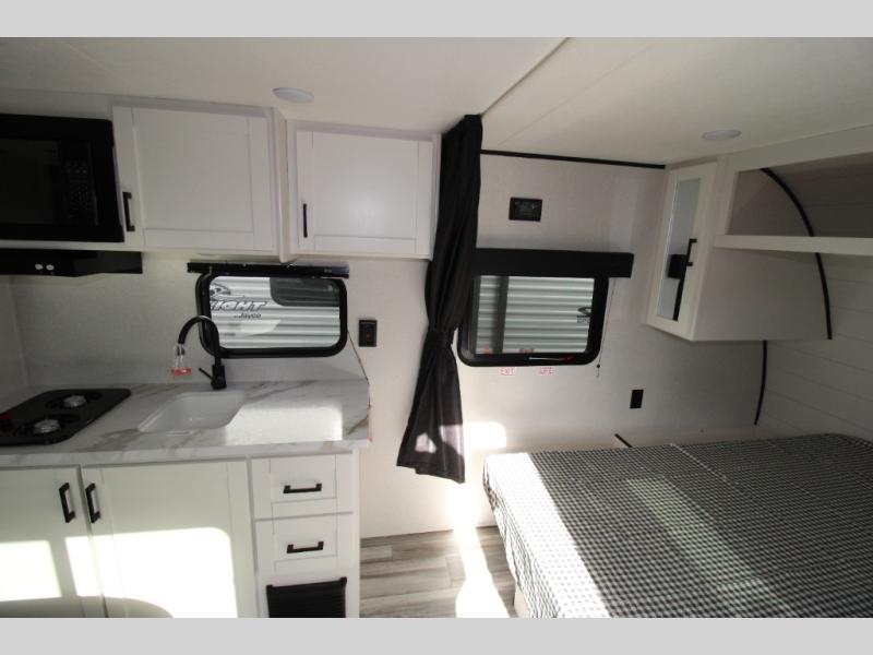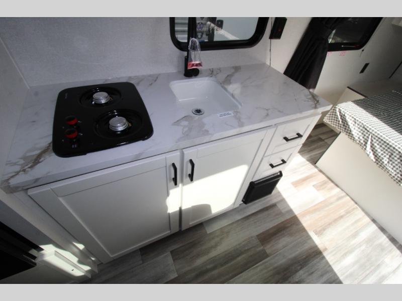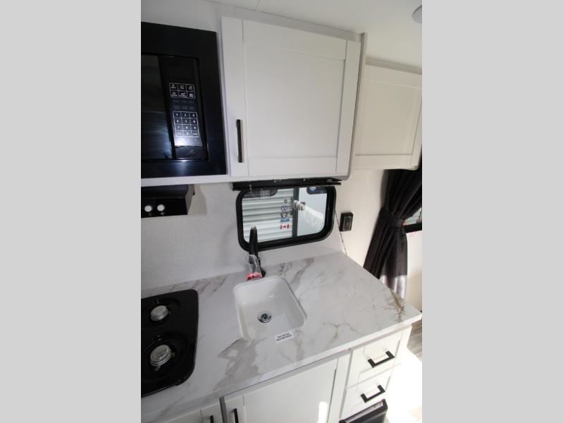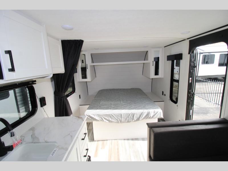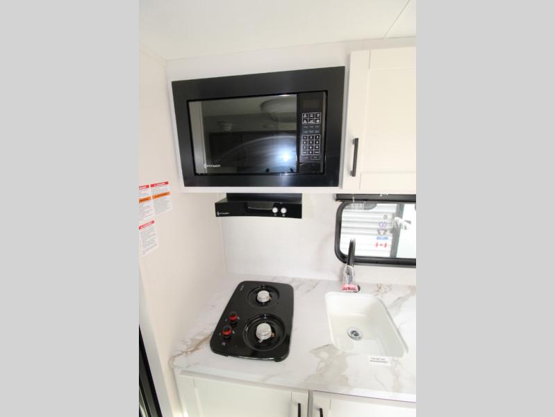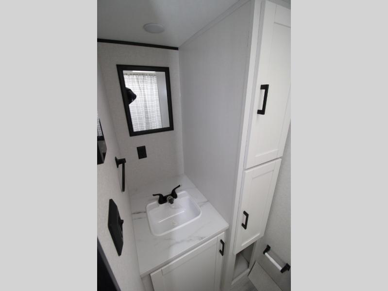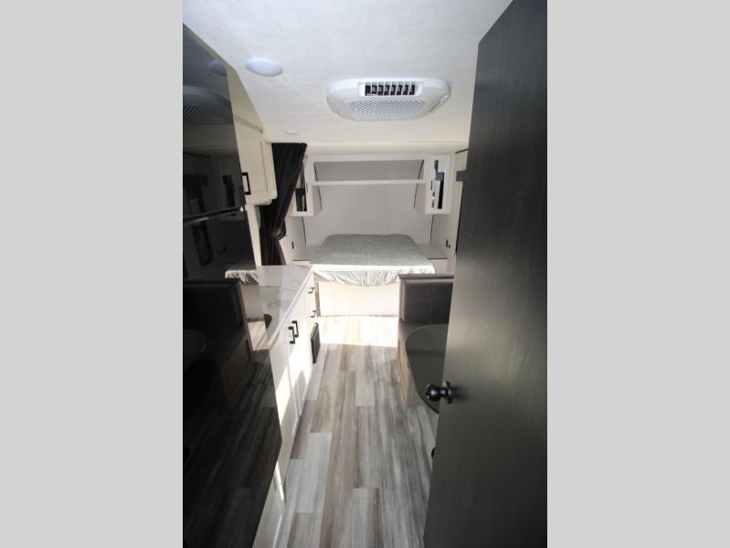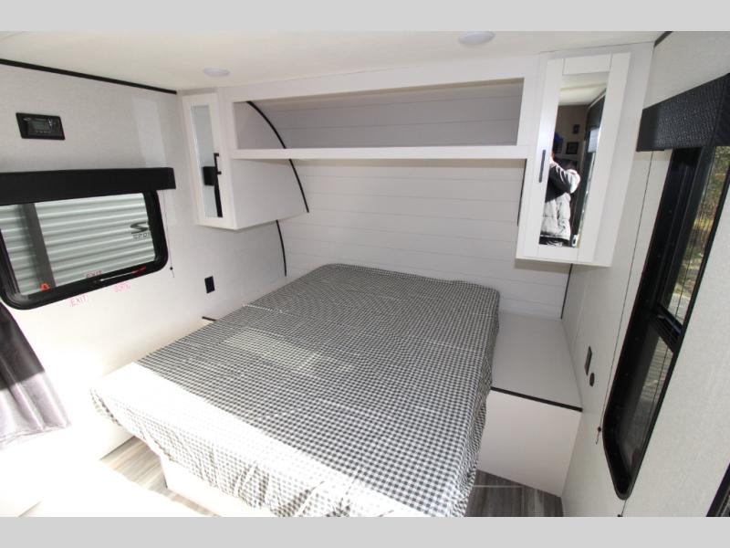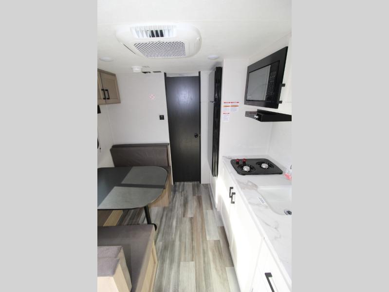This travel trailer includes everything you need for fun trips at the lake. When you arrive at the campground, you can unload the exterior storage, then put out the 12' power awning with LED lights. There is also an LP Quick Connect if you want to hook up your own grill! The booth dinette inside will provide a place to dine together, and the full rear bath with a tub/shower will make bath time easier than ever for little ones. A front RV queen bed will provide a great night's rest, and the privacy curtain will be appreciated when you're getting dressed in the morning.