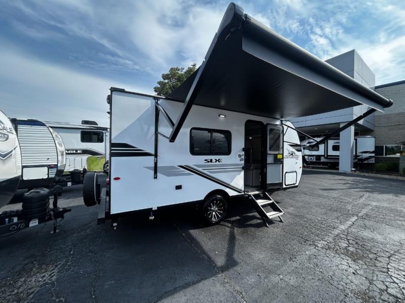 The Jayco Jay Flight SLX travel trailer is quite easy to own because it is lightweight for an easier towing experience. Built on a fully integrated A-frame with galvanized-steel, impact-resistant wheel wells, the Jay Flight SLX has quality at its very foundation. That quality continues on to the electric self-adjusting brakes, easy-lube hubs, Magnum Truss roof system, and LP quick connect. Some of what the mandatory Customer Value Package includes is backup camera prep, Keyed-Alike entry and baggage doors, and an on-demand tankless water heater.