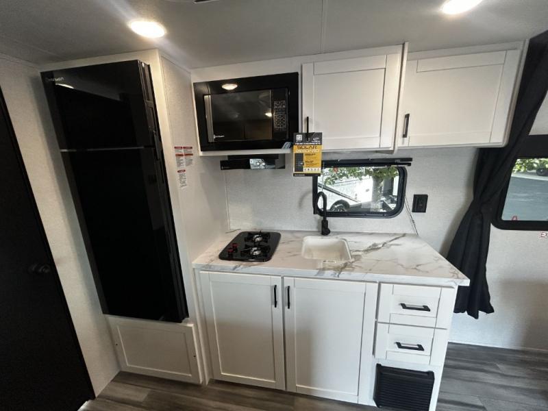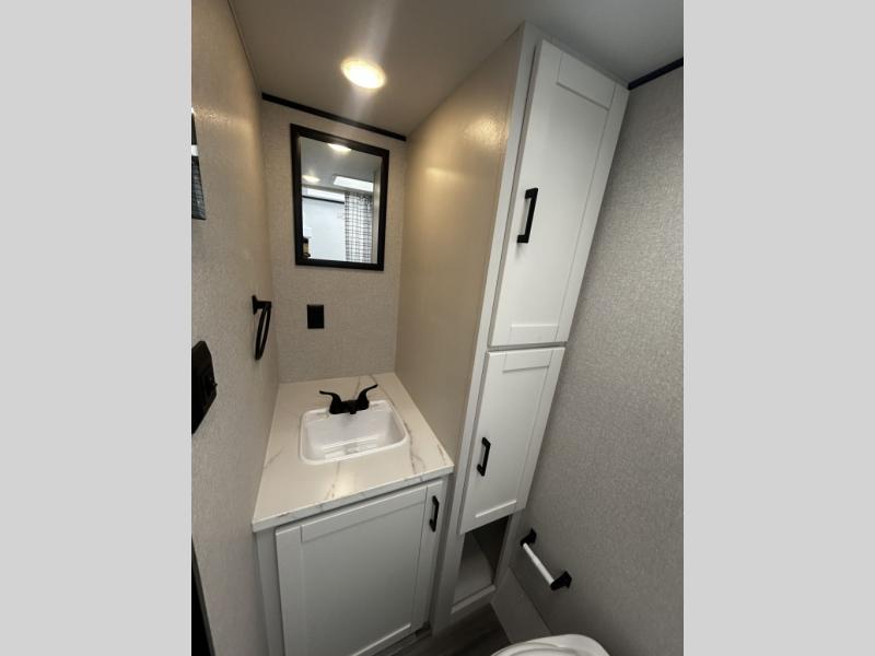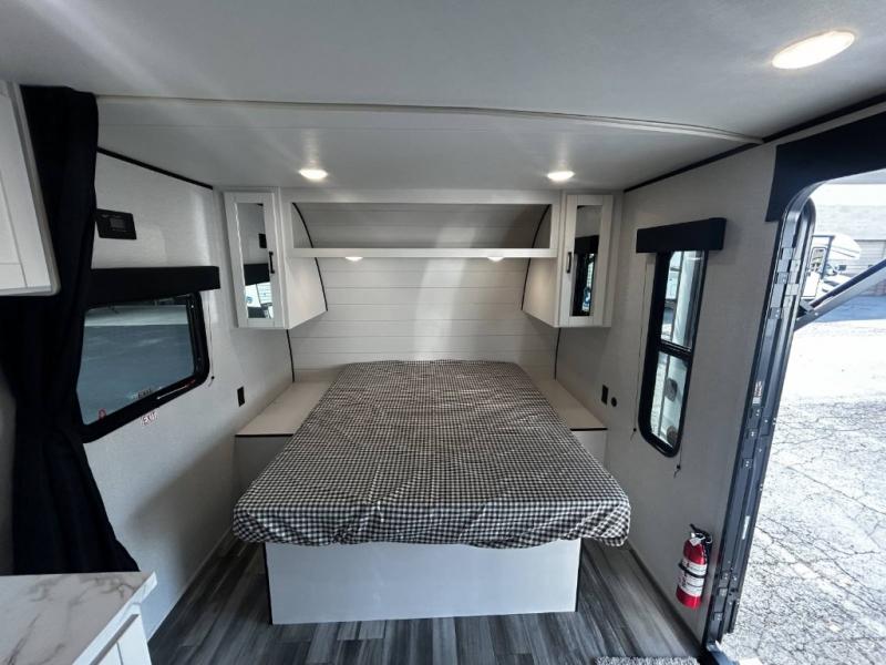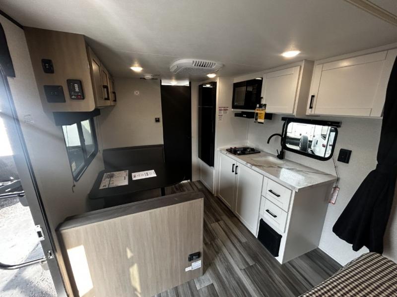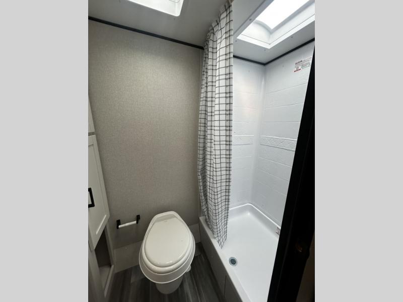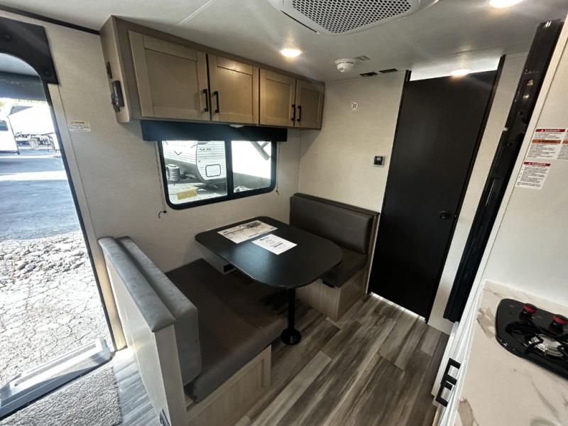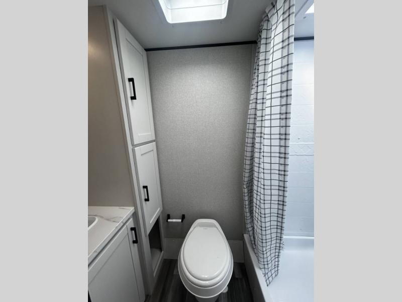 This travel trailer includes everything you need for fun trips at the lake. When you arrive at the campground, you can unload the exterior storage, then put out the 12' power awning with LED lights. There is also an LP Quick Connect if you want to hook up your own grill! The booth dinette inside will provide a place to dine together, and the full rear bath with a tub/shower will make bath time easier than ever for little ones. A front RV queen bed will provide a great night's rest, and the privacy curtain will be appreciated when you're getting dressed in the morning.