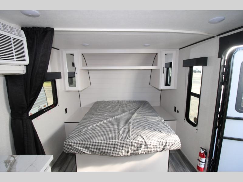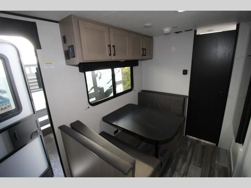 This travel trailer includes everything you need for fun trips at the lake. When you arrive at the campground, you can unload the exterior storage, then put out the 12' power awning with LED lights. There is also an LP Quick Connect if you want to hook up your own grill! The booth dinette inside will provide a place to dine together, and the full rear bath with a tub/shower will make bath time easier than ever for little ones. A front RV queen bed will provide a great night's rest, and the privacy curtain will be appreciated when you're getting dressed in the morning.