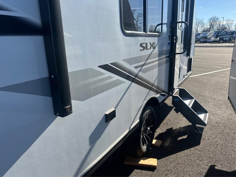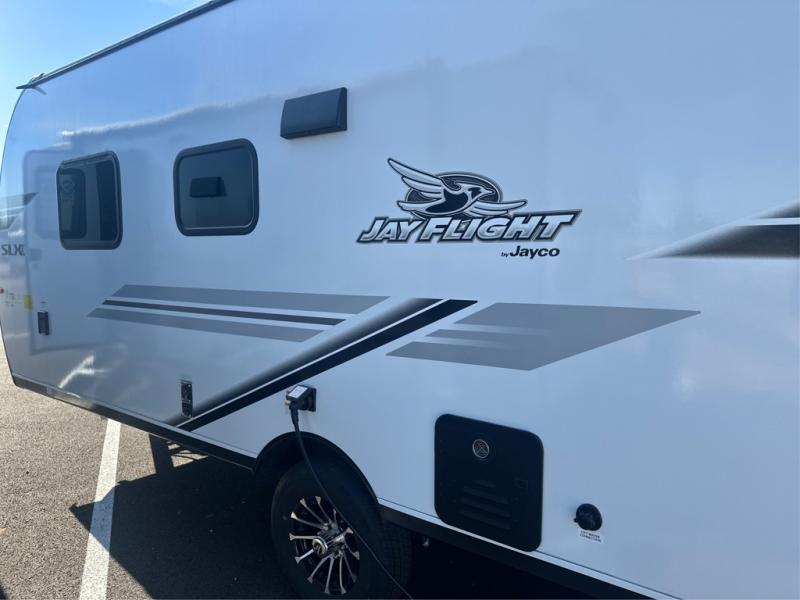 The Jayco Jay Flight SLX travel trailer is quite easy to own because it is lightweight for an easier towing experience. Built on a fully integrated A-frame with galvanized-steel, impact-resistant wheel wells, the Jay Flight SLX has quality at its very foundation. That quality continues on to the electric self-adjusting brakes, easy-lube hubs, Magnum Truss roof system, and LP quick connect. Some of what the mandatory Customer Value Package includes is backup camera prep, Keyed-Alike entry and baggage doors, and an on-demand tankless water heater.