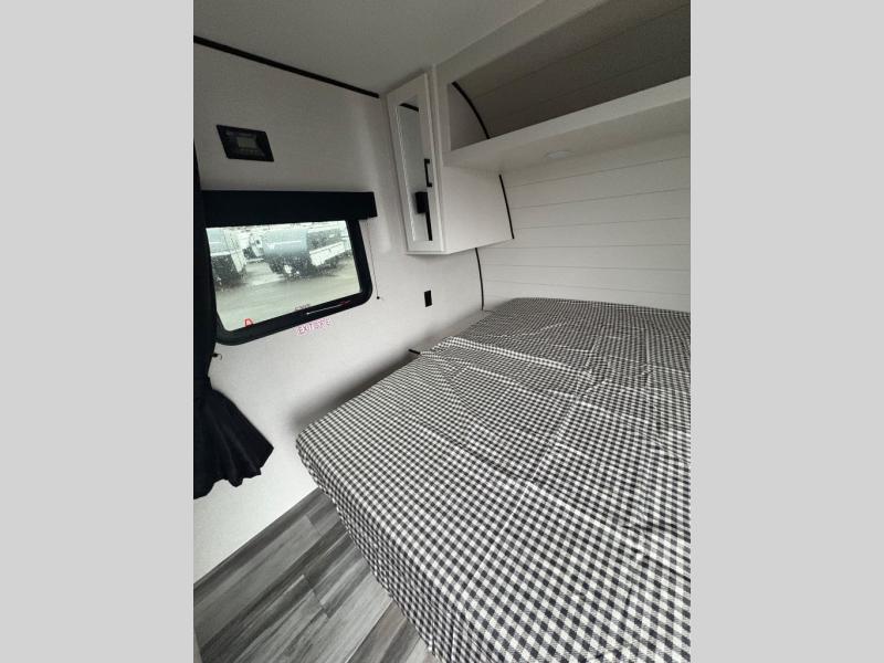 This travel trailer includes everything you need for fun trips at the lake. When you arrive at the campground, you can unload the exterior storage, then put out the 12' power awning with LED lights. There is also an LP Quick Connect if you want to hook up your own grill! The booth dinette inside will provide a place to dine together, and the full rear bath with a tub/shower will make bath time easier than ever for little ones. A front RV queen bed will provide a great night's rest, and the privacy curtain will be appreciated when you're getting dressed in the morning.