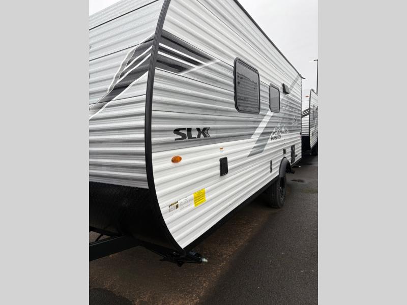 The Jayco Jay Flight SLX travel trailer is quite easy to own because it is lightweight for an easier towing experience. Built on a fully integrated A-frame with galvanized-steel, impact-resistant wheel wells, the Jay Flight SLX has quality at its very foundation. That quality continues on to the electric self-adjusting brakes, easy-lube hubs, Magnum Truss roof system, and LP quick connect. Some of what the mandatory Customer Value Package includes is backup camera prep, Keyed-Alike entry and baggage doors, and an on-demand tankless water heater.