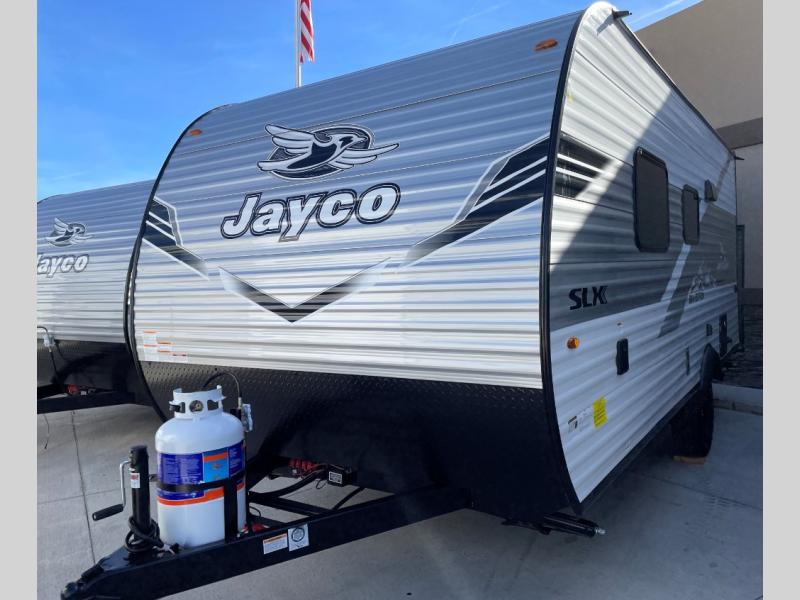 The Jayco Jay Flight SLX travel trailer is quite easy to own because it is lightweight for an easier towing experience. Built on a fully integrated A-frame with galvanized-steel, impact-resistant wheel wells, the Jay Flight SLX has quality at its very foundation. That quality continues on to the electric self-adjusting brakes, easy-lube hubs, Magnum Truss roof system, and LP quick connect. Some of what the mandatory Customer Value Package includes is backup camera prep, Keyed-Alike entry and baggage doors, and an on-demand tankless water heater.