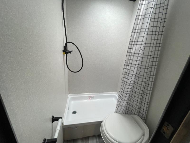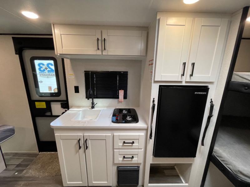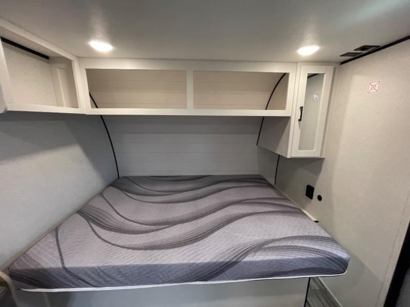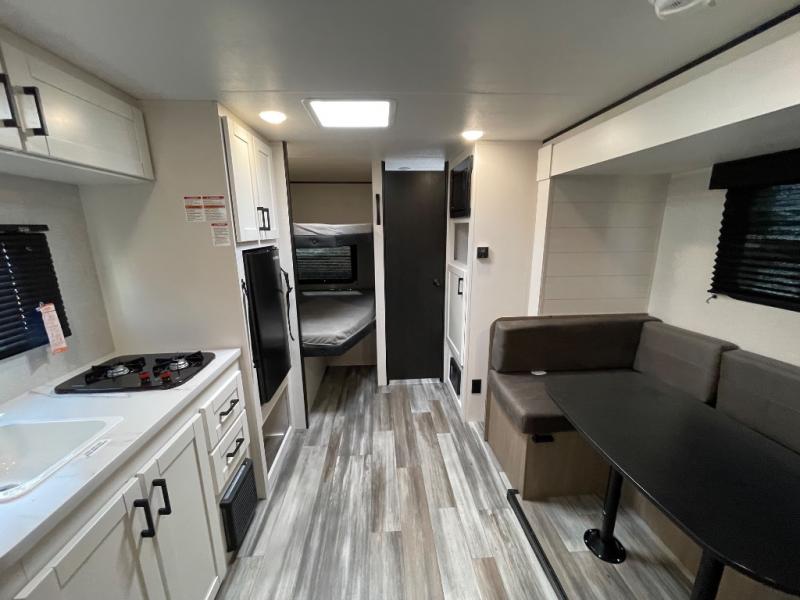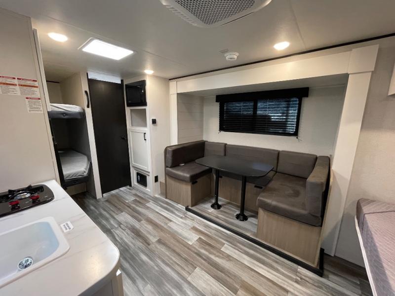 Your crew of eight will love camping in this travel trailer! There are double-size bunk beds in the rear corner and a private bath in the other rear corner for easy nighttime use. You will have the front queen bed to yourselves, along with an overhead shelf and a nightstand for your things. And the U-shaped dinette provides a place to dine, play games, and even let more guests sleep over. The Customer Value Package on this Sport Edition model includes a 19K BTU furnace, stabilizer jacks, a power awning, an entry door with a window and shade prep, and many more stand-out features!