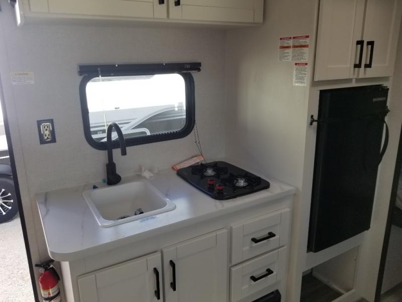 Your crew of eight will love camping in this travel trailer! There are double-size bunk beds in the rear corner and a private bath in the other rear corner for easy nighttime use. You will have the front queen bed to yourselves, along with an overhead shelf and a nightstand for your things. And the U-shaped dinette provides a place to dine, play games, and even let more guests sleep over. The Customer Value Package on this Sport Edition model includes a 19K BTU furnace, stabilizer jacks, a power awning, an entry door with a window and shade prep, and many more stand-out features!