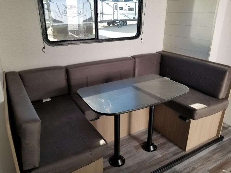 The Jayco Jay Flight SLX travel trailer is quite easy to own because it is lightweight for an easier towing experience. Built on a fully integrated A-frame with galvanized-steel, impact-resistant wheel wells, the Jay Flight SLX has quality at its very foundation. That quality continues on to the electric self-adjusting brakes, easy-lube hubs, Magnum Truss roof system, and LP quick connect. Some of what the mandatory Customer Value Package includes is backup camera prep, Keyed-Alike entry and baggage doors, and an on-demand tankless water heater.