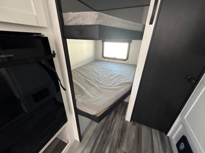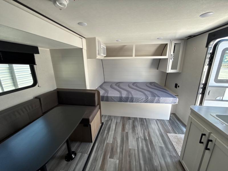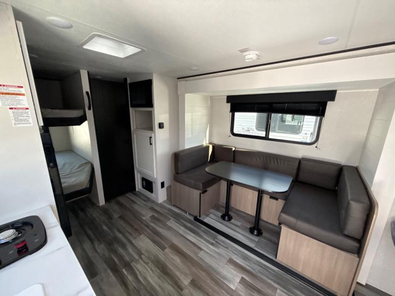 Your crew of eight will love camping in this travel trailer! There are double-size bunk beds in the rear corner and a private bath in the other rear corner for easy nighttime use. You will have the front queen bed to yourselves, along with an overhead shelf and a nightstand for your things. And the U-shaped dinette provides a place to dine, play games, and even let more guests sleep over. The Customer Value Package on this Sport Edition model includes a 19K BTU furnace, stabilizer jacks, a power awning, an entry door with a window and shade prep, and many more stand-out features!