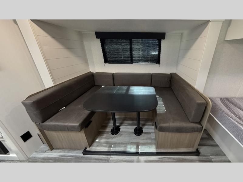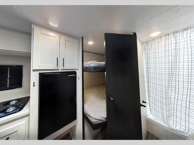 Your crew of eight will love camping in this travel trailer! There are double-size bunk beds in the rear corner and a private bath in the other rear corner for easy nighttime use. You will have the front queen bed to yourselves, along with an overhead shelf and a nightstand for your things. And the U-shaped dinette provides a place to dine, play games, and even let more guests sleep over. The Customer Value Package on this Sport Edition model includes a 19K BTU furnace, stabilizer jacks, a power awning, an entry door with a window and shade prep, and many more stand-out features!