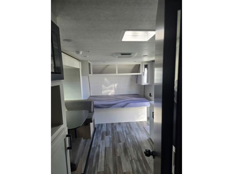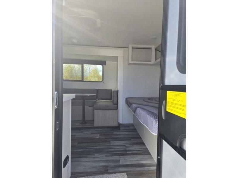 Your crew of eight will love camping in this travel trailer! There are double-size bunk beds in the rear corner and a private bath in the other rear corner for easy nighttime use. You will have the front queen bed to yourselves, along with an overhead shelf and a nightstand for your things. And the U-shaped dinette provides a place to dine, play games, and even let more guests sleep over. The Customer Value Package on this Sport Edition model includes a 19K BTU furnace, stabilizer jacks, a power awning, an entry door with a window and shade prep, and many more stand-out features!