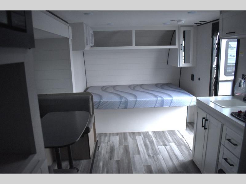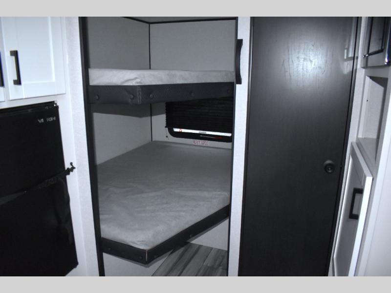 Your crew of eight will love camping in this travel trailer! There are double-size bunk beds in the rear corner and a private bath in the other rear corner for easy nighttime use. You will have the front queen bed to yourselves, along with an overhead shelf and a nightstand for your things. And the U-shaped dinette provides a place to dine, play games, and even let more guests sleep over. The Customer Value Package on this Sport Edition model includes a 19K BTU furnace, stabilizer jacks, a power awning, an entry door with a window and shade prep, and many more stand-out features!