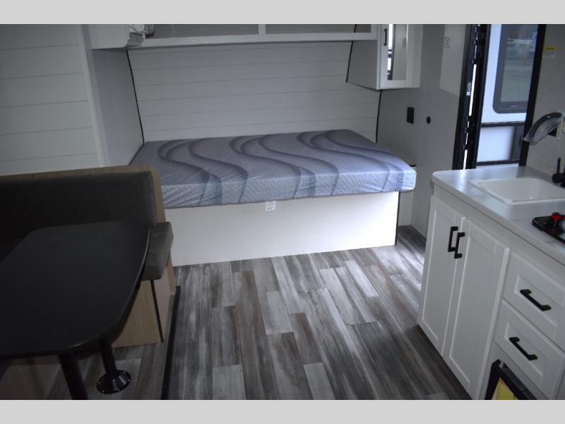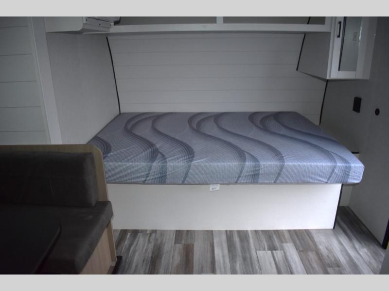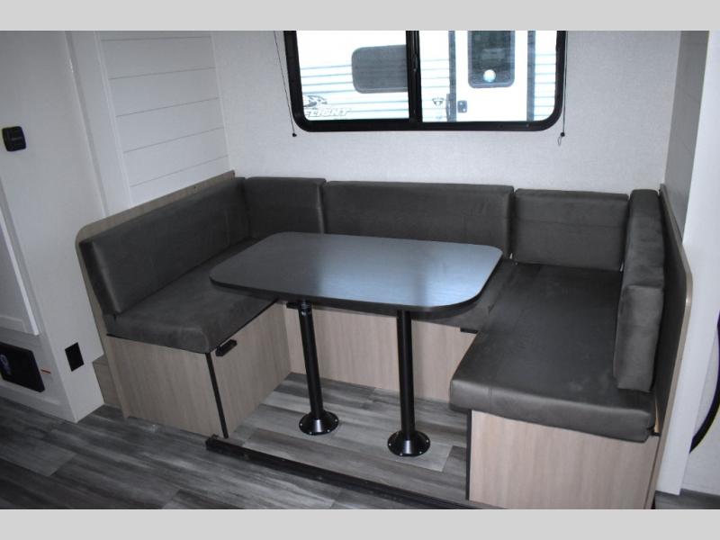 Your crew of eight will love camping in this travel trailer! There are double-size bunk beds in the rear corner and a private bath in the other rear corner for easy nighttime use. You will have the front queen bed to yourselves, along with an overhead shelf and a nightstand for your things. And the U-shaped dinette provides a place to dine, play games, and even let more guests sleep over. The Customer Value Package on this Sport Edition model includes a 19K BTU furnace, stabilizer jacks, a power awning, an entry door with a window and shade prep, and many more stand-out features!
