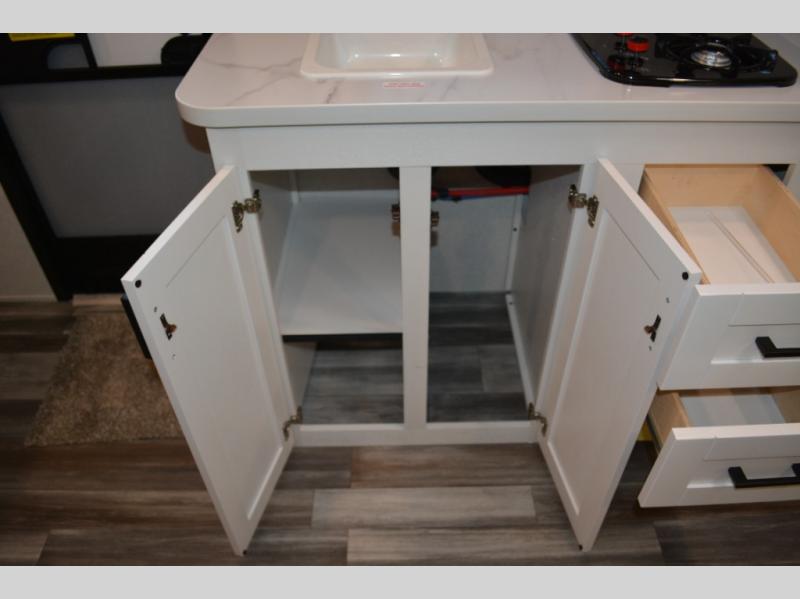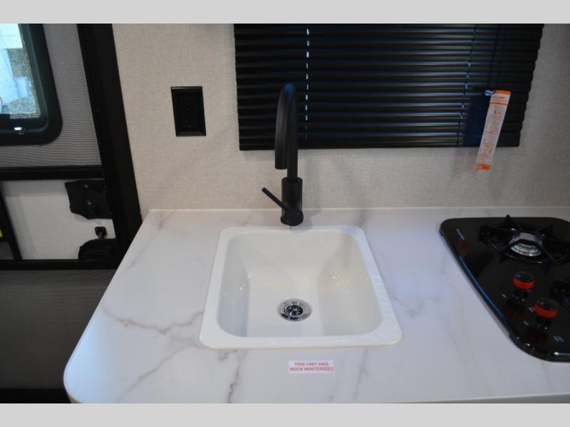 Your crew of eight will love camping in this travel trailer! There are double-size bunk beds in the rear corner and a private bath in the other rear corner for easy nighttime use. You will have the front queen bed to yourselves, along with an overhead shelf and a nightstand for your things. And the U-shaped dinette provides a place to dine, play games, and even let more guests sleep over. The Customer Value Package on this Sport Edition model includes a 19K BTU furnace, stabilizer jacks, a power awning, an entry door with a window and shade prep, and many more stand-out features!