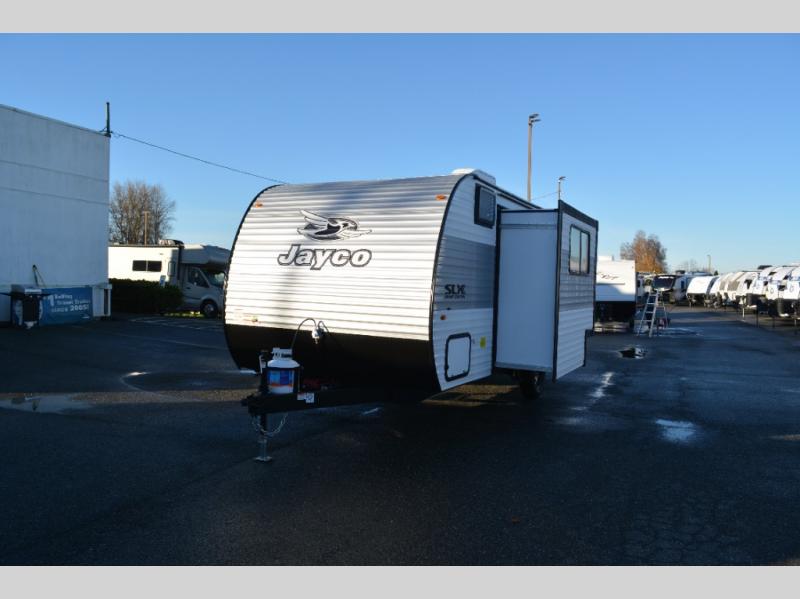 The Jayco Jay Flight SLX travel trailer is quite easy to own because it is lightweight for an easier towing experience. Built on a fully integrated A-frame with galvanized-steel, impact-resistant wheel wells, the Jay Flight SLX has quality at its very foundation. That quality continues on to the electric self-adjusting brakes, easy-lube hubs, Magnum Truss roof system, and LP quick connect. Some of what the mandatory Customer Value Package includes is backup camera prep, Keyed-Alike entry and baggage doors, and an on-demand tankless water heater.