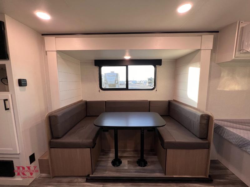 Your crew of eight will love camping in this travel trailer! There are double-size bunk beds in the rear corner and a private bath in the other rear corner for easy nighttime use. You will have the front queen bed to yourselves, along with an overhead shelf and a nightstand for your things. And the U-shaped dinette provides a place to dine, play games, and even let more guests sleep over. The Customer Value Package on this Sport Edition model includes a 19K BTU furnace, stabilizer jacks, a power awning, an entry door with a window and shade prep, and many more stand-out features!