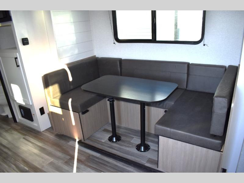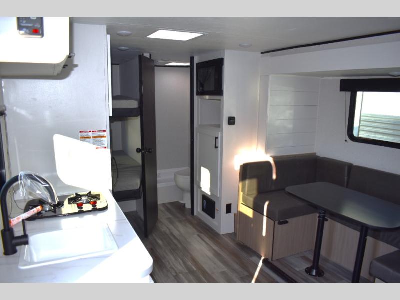 Your crew of eight will love camping in this travel trailer! There are double-size bunk beds in the rear corner and a private bath in the other rear corner for easy nighttime use. You will have the front queen bed to yourselves, along with an overhead shelf and a nightstand for your things. And the U-shaped dinette provides a place to dine, play games, and even let more guests sleep over. The Customer Value Package on this Sport Edition model includes a 19K BTU furnace, stabilizer jacks, a power awning, an entry door with a window and shade prep, and many more stand-out features!